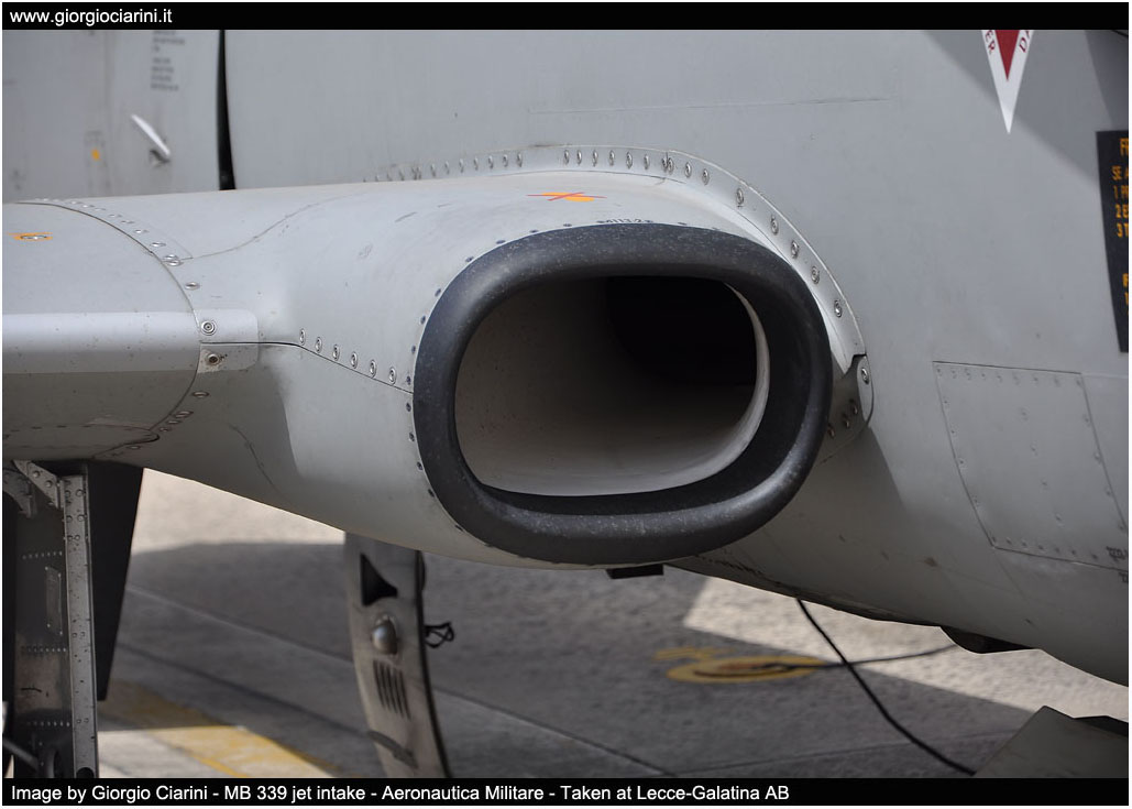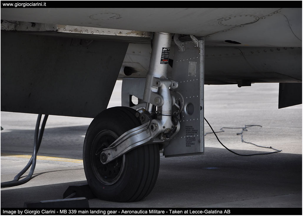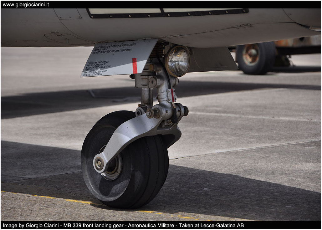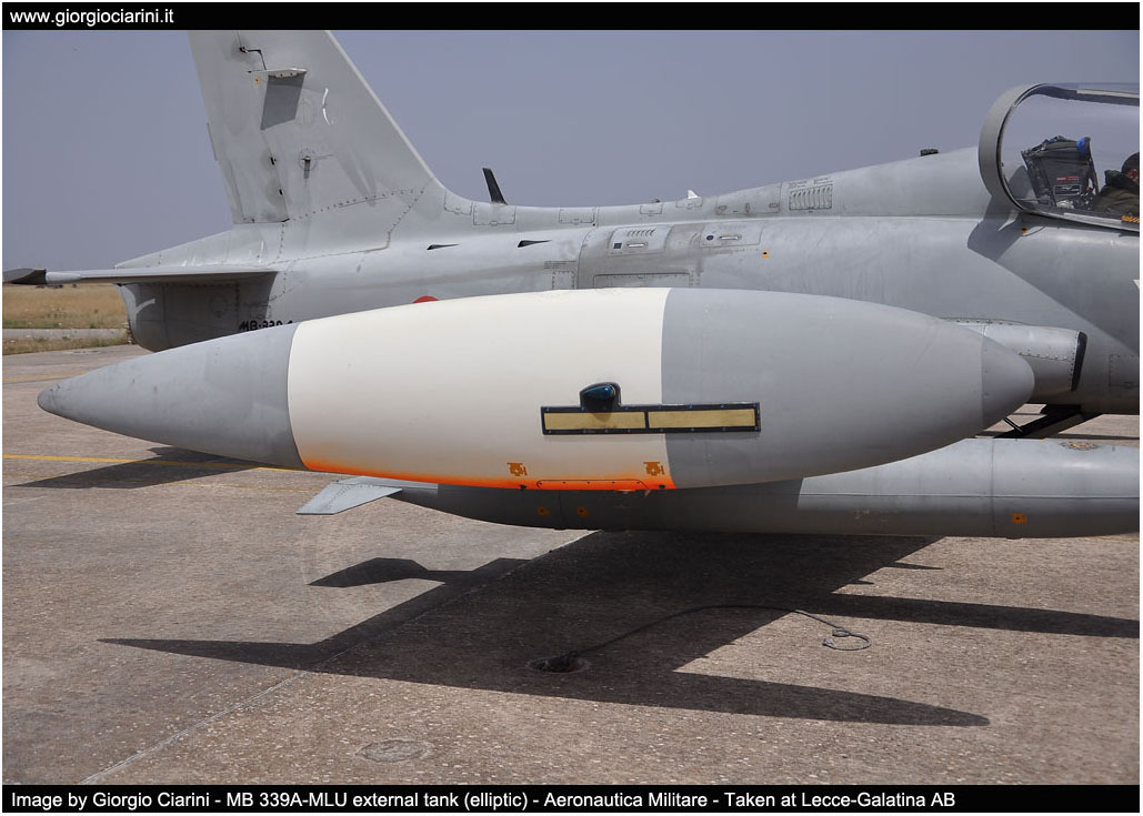 Versione T-339A (MB 339A) Dimensioni - Apertura alare10.858 mt (con serbatoi ellittici) - Apertura alare11.220 mt (con serbatoi cilindrici) - Lunghezza fusoliera 10.972 mt - Altezza alla sommità della deriva 3.994 mt Pesi - Peso massimo al decollo 5.900 kg - Capacità interna carburante 626 kg - Capacità esterna carburante 1,333 kg - Capacità totale carburante 1.959 kg Prestazioni - Velocità massima 926 km/h (0.82 Mach) - Tangenza max 45.000 ft - Autonomia 3.600 km (trasferimento) - G-Limits -4G +7,3G Impianto propulsivo - Rolls-Royce Viper MK632-43 da 4.000 lbf di spinta Armamento - due cannoni da 30 mm. - due mitragliatrici da 12,7 mm. - Bombe MK82/76 - Razziera - Apparato collimatore Avionica -Sistema di indicazione assetto e direzione -Sistema dati area -Sistema di determinazione assistita della posizione -TACAN, ADF, VOR/ILS - Apparato identificazione IFF -Radio VHF/UHF Have Quick Equipaggio ed abitacolo - due piloti - due seggiolini eiettabili Martin Baker MK IT10F