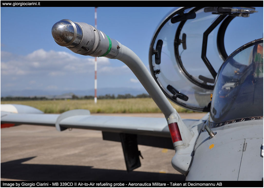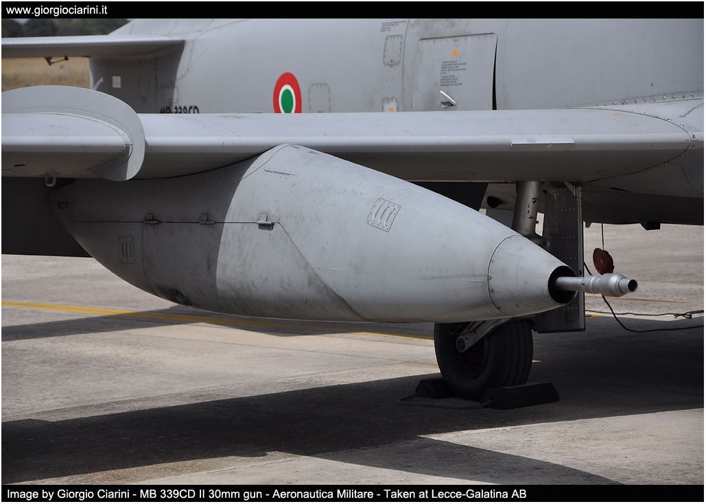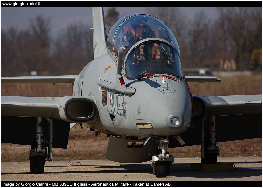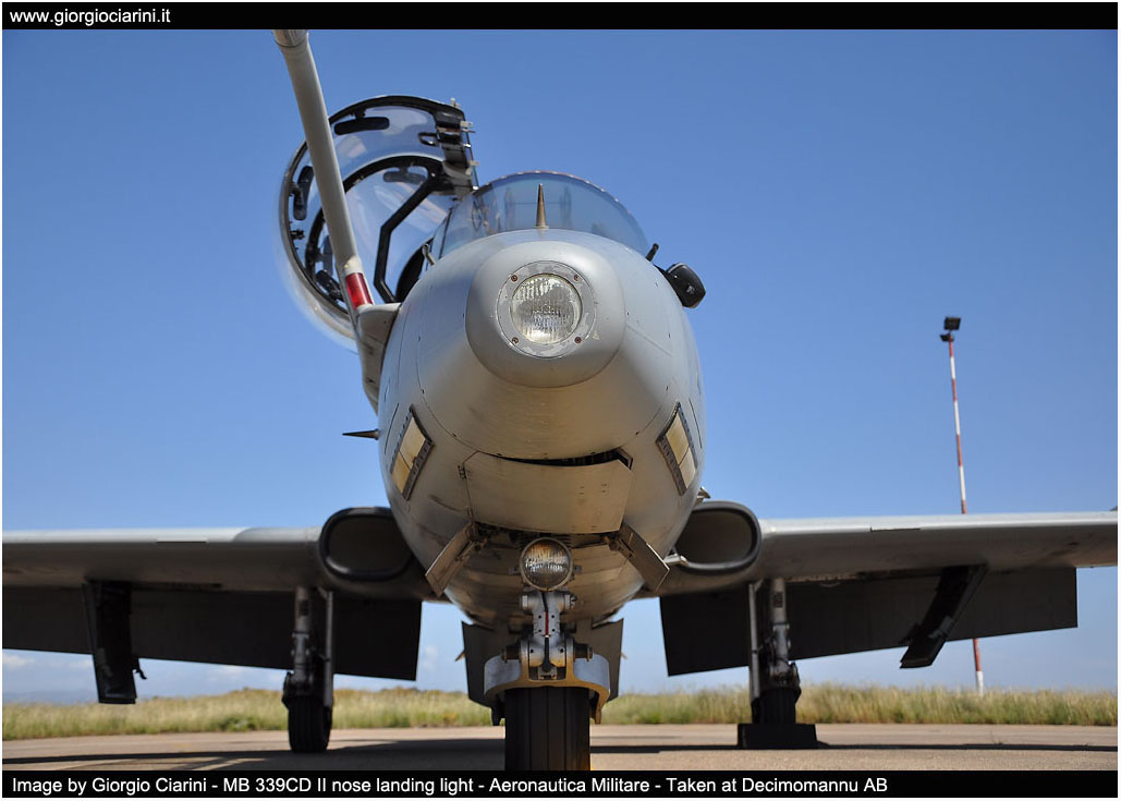 Versione T-339C (MB 339CDII) Dimensioni - Apertura alare 11.220 mt - Lunghezza fusoliera 11.242 mt - Altezza alla sommità della deriva 3.994 mt Pesi - Peso massimo al decollo 6.350 kg - Capacità interna carburante 626 kg - Capacità esterna carburante 1.333 kg - Capacità totale carburante 1.959 kg Prestazioni - Velocità massima 926 km/h (0.82 Mach) - Tangenza max 45.000 feet - Autonomia 3.600 km (trasferimento) - G-Limits -4G +7,3G Impianto propulsivo - Rolls-Royce Viper MK632-43 da 4.000 lbf di spinta Armamento - due cannoni da 30 mm. - due mitragliatrici da 12,7 mm. - Bombe MK82/76 - Razziera - ATM-9L(CAPTIVE AIM-9L Training Missile) Avionica - Piattaforma inerziale GPS - Visualizzatore mappe digitali - TACAN, ADF, VOR/ILS - Apparato identificazione IFF - Radio VHF/UHF Have Quick - Crash recorder - Sistema NVG - Radar altimetro - Ricevitore d'allarme radar RWR Equipaggio ed abitacolo - due piloti - due schermi HUD (Head Up Display) - due seggiolini eiettabili Martin Baker MK IT10LK - sei display multi funzione MFD