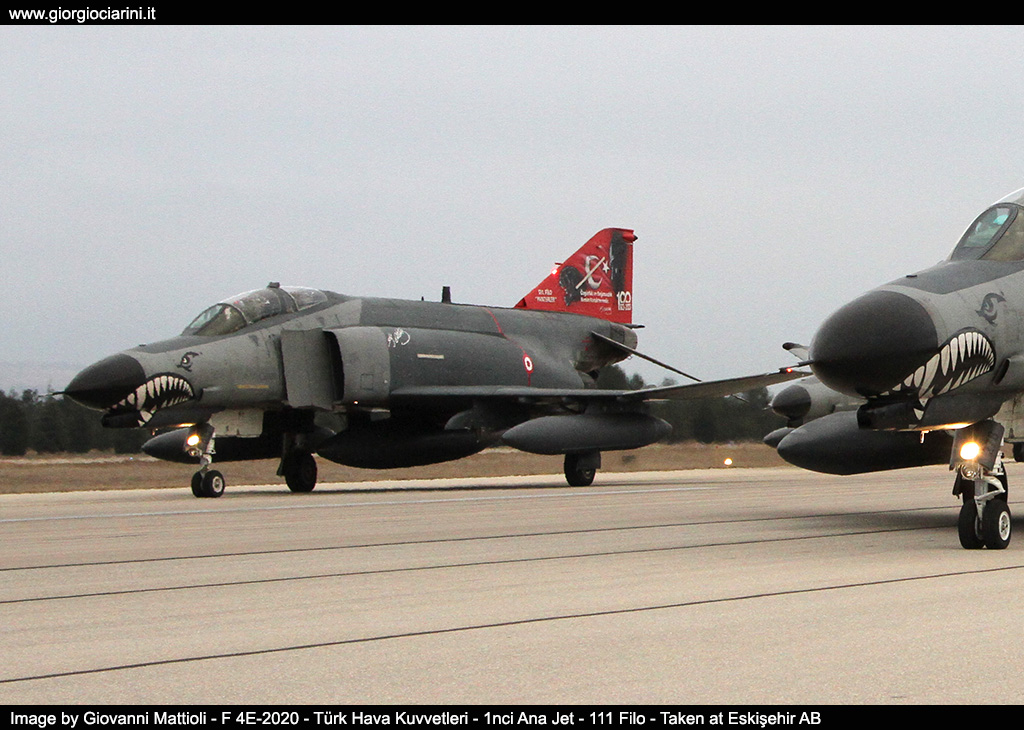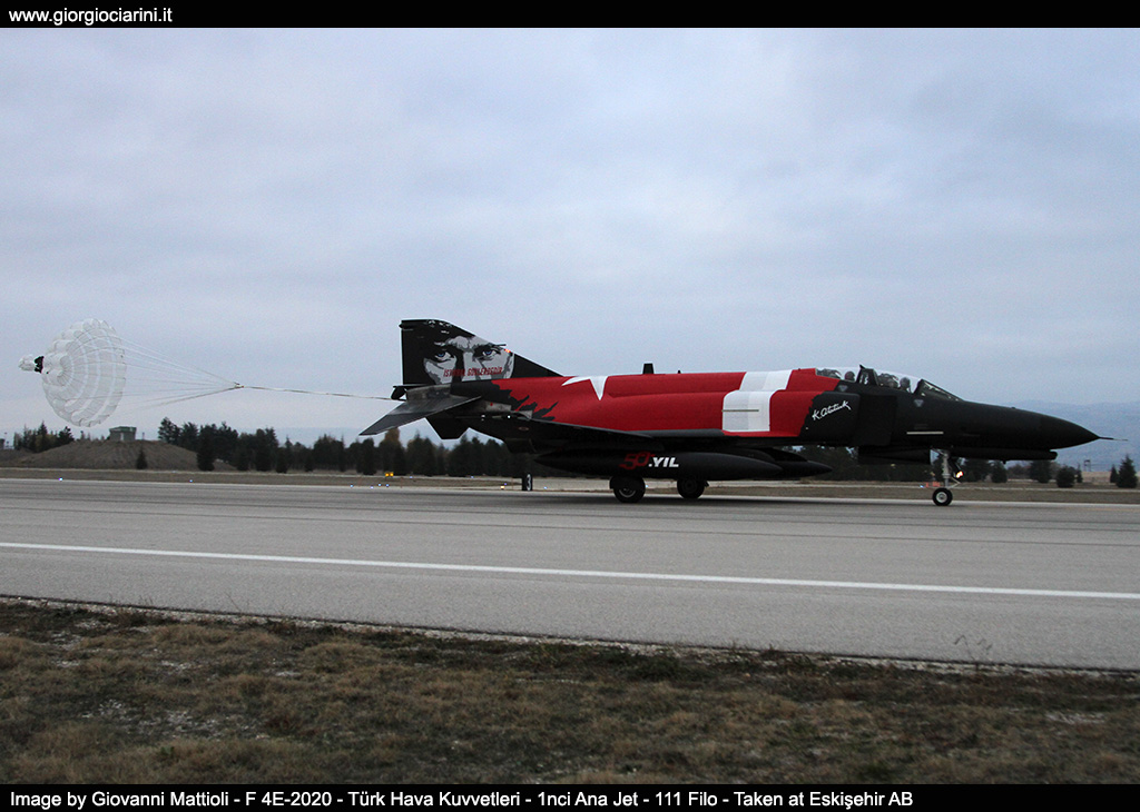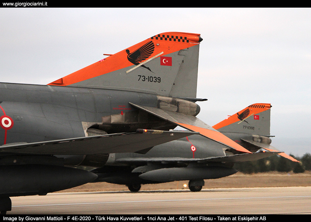 On 16 and 17 November, one of the most spectacular aeronautical events of this recently concluded 2024 took place. The Türk Hava Kuvvetleri (Turkish Air Force) organized a grand event to celebrate 50 years of service in its ranks of the iconic F-4 Phantom, and for the occasion it opened the gates, about 650 spotters and journalists from all over the world, one of the least known bases in Turkish soil, Eskişehir is home to the 1nci Ana Jet Üs Komutanlığı and the last air base to host the Turkish Phantoms. The base is home to 111 Filo equipped with F-4E-2020; 113 Filo with F-16C/D; 201 A&K Filo (Arama ve Kurtarma - Search and Rescue) equipped with helicopters AS532UL and UH-1H and aircraft CN235-100M; from 401 Test Filosu as experimental department of new aircraft, weapons and systems; finally, the 311 OSEM Filo as a Remote Piloting Aircraft Control Center (UAS - Unmanned Aerial System). Certainly the presence of 311 OSEM Filo and 401 Filosu Test make this structure less visitable. The first of the two days of the event took place on Saturday 16, at about one thousand meters above sea level in the mountainous hills of the Çatacık National Park, located about 140 km northeast from the Eskişehir air base, where, with the support of Turkish Air Force and Police personnel, the photographers were placed in an elevated area near the village of Çalkaya (Mihalıççık District/Eskişehir Province), with a view over the artificial lake that feeds the Gökçekaya Baraji dam. After many hours of waiting and the risk that the event was rescheduled due to adverse weather conditions, two Phantom of 111 Filo have amazed the present by each one completing a dozen passages in the valley below allowing to make breathtaking photographic shots, between tight turns, condensations on the wing ends and on the back of the wings, entering the valley from both directions so as to be taken in every possible angle. To crown the magical moment and in praise of the extraordinary organization, one of the two aircraft was pictured with a celebratory livery with predominance of black tones to highlight the red color of the Turkish flag painted on the entire back of the aircraft. The second part of the event took place on Sunday 17 with a photo session of some aircraft, which after take-off have made a series of passages in pairs even with full afterburning, and as per ritual during landing they pulled out the parachute brake. To conclude in style, a dozen F-4’s performed an "Elephant Walk" on the runway, thrilling guests with the traditional whistle of twenty J-79 engines. Among the ten aircraft, in addition to the special color were two very rare Phantom del 401 Test Filosu distinguishable from the tail painted partly in orange. Needless to say, the event had a very high international response level especially thanks to the exceptional organization put in place by the Turkish Air Force to which our greatest thanks.