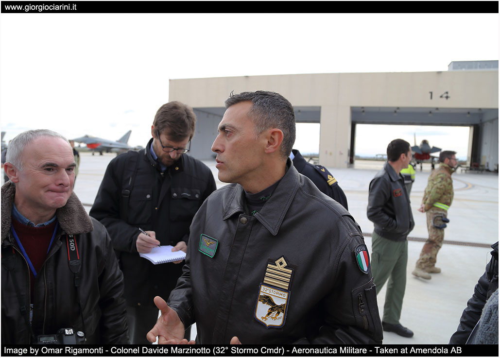 Media day - friday 30 November 2018 Punctual as scheduled, the meeting (for a small group of journalists and photographers) was fixed in front of the access to the air base at 9 o'clock am. Later we were all transferred to the Wing’s briefing room for the conference press, started with a brief course on airport security and the measures to be taken within it. At 10 o'clock, with the arrival of Capo di Stato Maggiore on board of a UH 139A of the 31st STORMO, the Lieutenant General of Air Squadron Alberto Rosso, and after the honors and greetings to the Chief of SMA by moderator Col. Merola, the word passed to the Commander of the 32nd STORMO, Col. Davide Marzinotto who presented in detail the air base of Amendola with a particular focus on the F 35 aircraft. At 10.50, Col. Andres Maldonado spoke, describing briefly the functionalities of the TLP and the structures that operate in the course of this edition. During FC 2018-4 the number of participating Aircrew is formed by 28 crews who alternate during the four weeks between Blue Assets (28 crews) and Red Assets (12 crews) and 8 Support Assets with tasks of AEW, EW, SLOMO, SURPIC, HVAA and CSAR. In four weeks (20 days), 15 days operation with real flight operations, while another five days for planning and feed-back. At 11.30 at the end of the press conference we were transferred to the area of ??the 13th Gruppo where for the occasion was prepared a static exhibition of some of the aircraft witch took part in the TLP with the possibility of interviews some testimonials. There were present an F 35A (32-07), a G 550CAEW, a T-346, an F 2000 Typhoon, a MQ9-A for the Aeronautica Militare, an AV 8B for Marina Militare, a Belgian F 16 a Tornado and an EF 2000 of Luftwaffe, a Learjet 36A and an USAF F15 of LN. At 12 o'clock there was a "Media Opportunity" with the CSM of the Aeronautica Militare always in the area of the 13rd Gruppo Volo. During this event the CSM declared F 35 able to Initial Operational Capability (IOC), the first European Air Force to reach this milestone. "Today is an important day for the Aeronautica Militare, with the formal Initial Operational Capability ( IOC ) of our F 35 and we are able to express (the first in Europe) a real operational capacity with a fifth generation machine, which means be ready to encounter the missions required by the national defense system with a system consisting of several aircraft, ready and trained crews to use them, supported by maintenance personnel and logistically sustainable over time. We must be proud of this finishing line, thanks to the work who preceded us and who every day with commitment, heart and passion has allowed us to achieve incredible results. A very important day also for the meaning of this TLP Course, which represents the first concrete integration between fourth and fifth generation weapon systems and an important opportunity to grow and develop together with other friendly nations the essential skills that aerospace power must be able to express in the world. The F35 has a very high flexibility capability and it is able to receive and redistribute an extraordinary flow of information and it is the best in the world and we are ready today (as AM)"