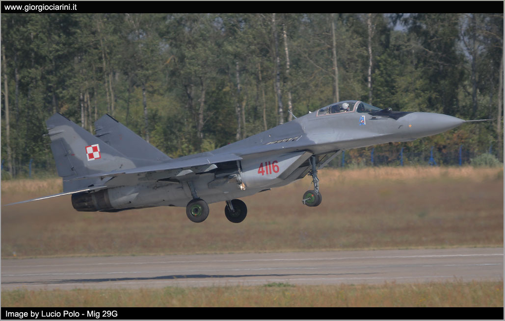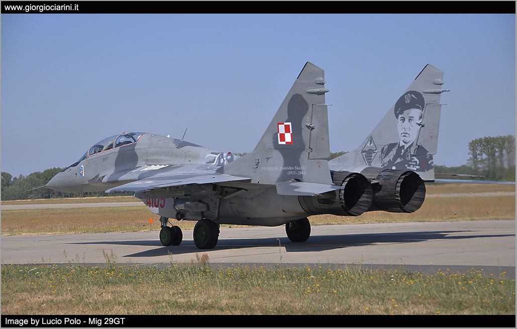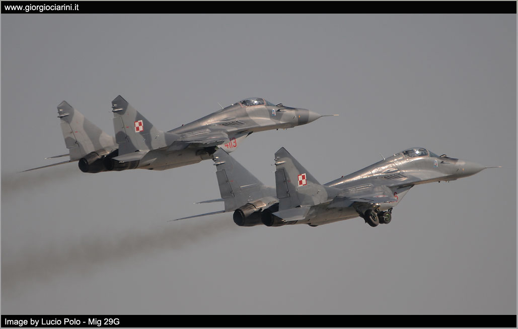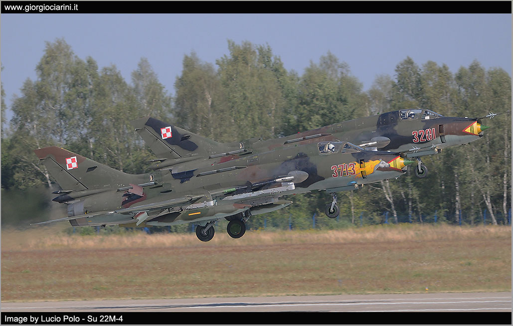 On the occasion of the Warsaw Air Parade on 15th August and the subsequent Radom Air Show, scheduled for 22nd and 23rd August, on the Miñsk Mazowiecki Air Base deployed Mig 29 41.elt of Malbork, that together with the premises of the 1.elt have competed in carrying out the preparation for the fly past in formation and the performances for the two events in program. At the same time, Su 22 of the 8.elt and 40.elt from Swidwin Air Base (21.BLT) were also placed on the 23.BLT of Miñsk. The F 16s operated from Poznan Air Base, transports and helicopters from Deblin Air Base. For the occasion the Polish Ministry of Defence organized two days dedicated to journalists and spotters, Wednesday 18 and Friday 21, coinciding with the activity, in all there were about fifteen Mig 29 and 7/8 Su 22 in the various versions.