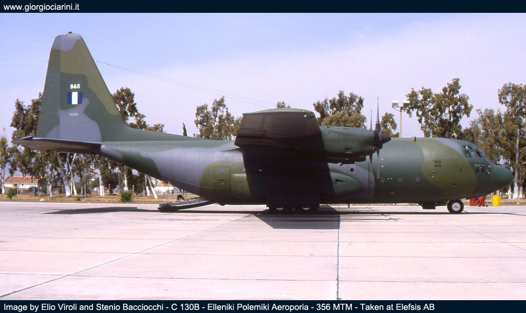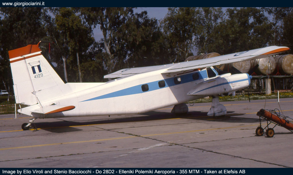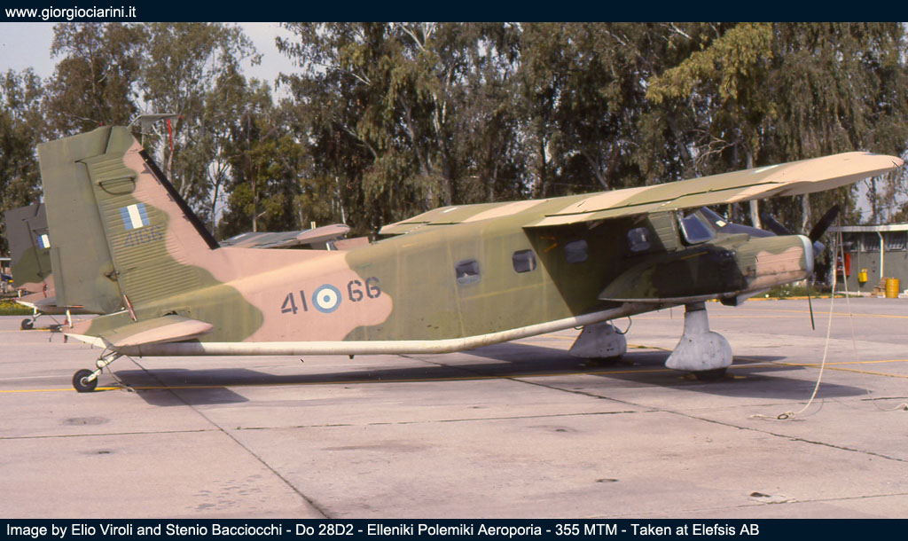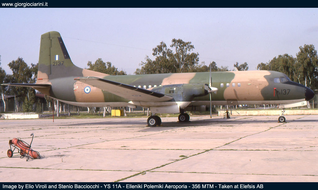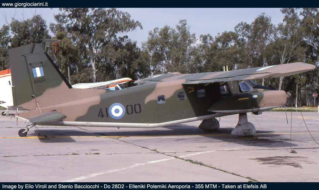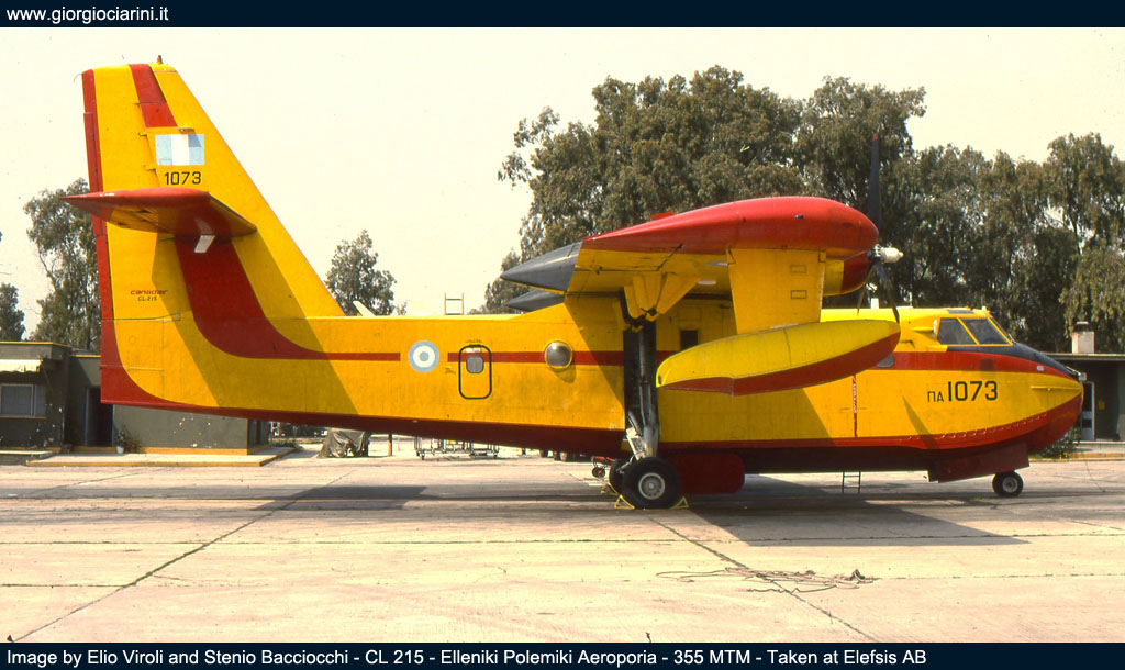 Durante la nostra visita i reparti stanziati ad Elefsis erano il 355 MTM “ifestos”, con in dotazione i Canadair CL 215, utilizzati per l’antincendio, e alcuni Do 28D-2 utilizzati per il trasporto ed il lancio di paracadutisti. Poi c’era il 356 MTM “iraklis” dotato di quadrimotori C 130 nelle versioni B e H, gli Hercules erano utilizzati per il trasporto, il 355 MTM aveva anche in carico un paio di YS 11A, anch’essi usati per il trasporto. Il terz’ultimo reparto era il 358 MED “faethon” dotato di AB 205A, AB 206A e Bell 212, con compiti di trasporto e soccorso. E per ultimo, principale scopo della nostra permanenza ad Elefsis, il 353 MNAS con i suoi Albatross, il reparto, oltre a svolgere attività di ricerca e soccorso, svolgeva attività cooperazione con la marina ellenica, questa forniva anche parte del personale di volo per le missioni ASW (Anti Submarine Warfare). Al 353 MNAS trovammo ancora tre Albatros operativi; ogni aereo portava il nome di un personaggio della mitologia greca, come di consuetudine per la Forza Aerea, infatti la matricola 517190 era “Teseo”, la 517203 “Efesto” e la 15289 “Fetonte”. |