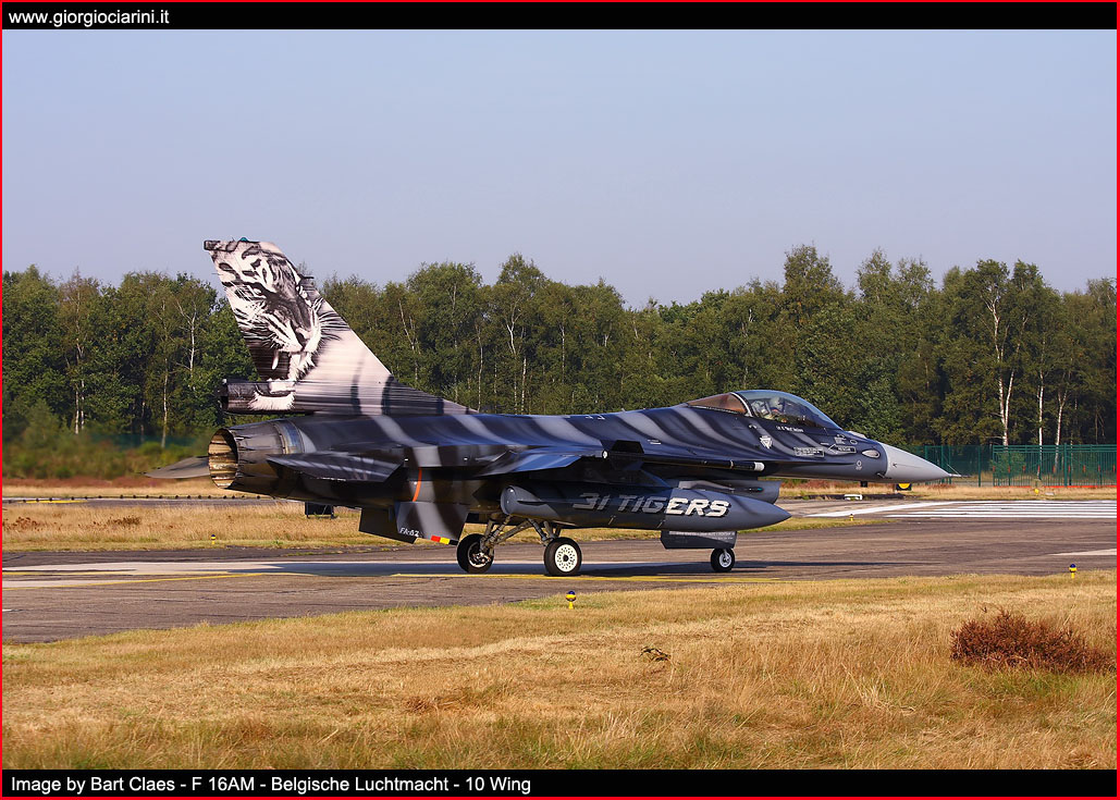 Kleine Brogel Air Base is located in the eastern part of Belgium near the Dutch border, it is the homebase of the 10 Wing, which has to employ the following Squadron: 31ste Smaldeel "Tijger", 349ste Smaldeel "Goedendag" and the OCU (Operational Conversion Unit), the 10 Wing is integral part of the Belgium Air Component (COMOPSAIR). With this photogallery we wanted to highlight the normal activity during the year 2009, most of these images are taken near the Runway threshold 23 or 06, and to show the major aircraft deployed on the airport, while others displaying aircrafts cross from other Air Bases of the Belgian Air Force that foreign Air Forces during cross country flight. The latest images were dedicated to the special aircraft with colours of the 31°Squadron "Tiger", including the example called "Blackbird" that attended the 2009 Tiger Meet organized precisely at Kee Bee.