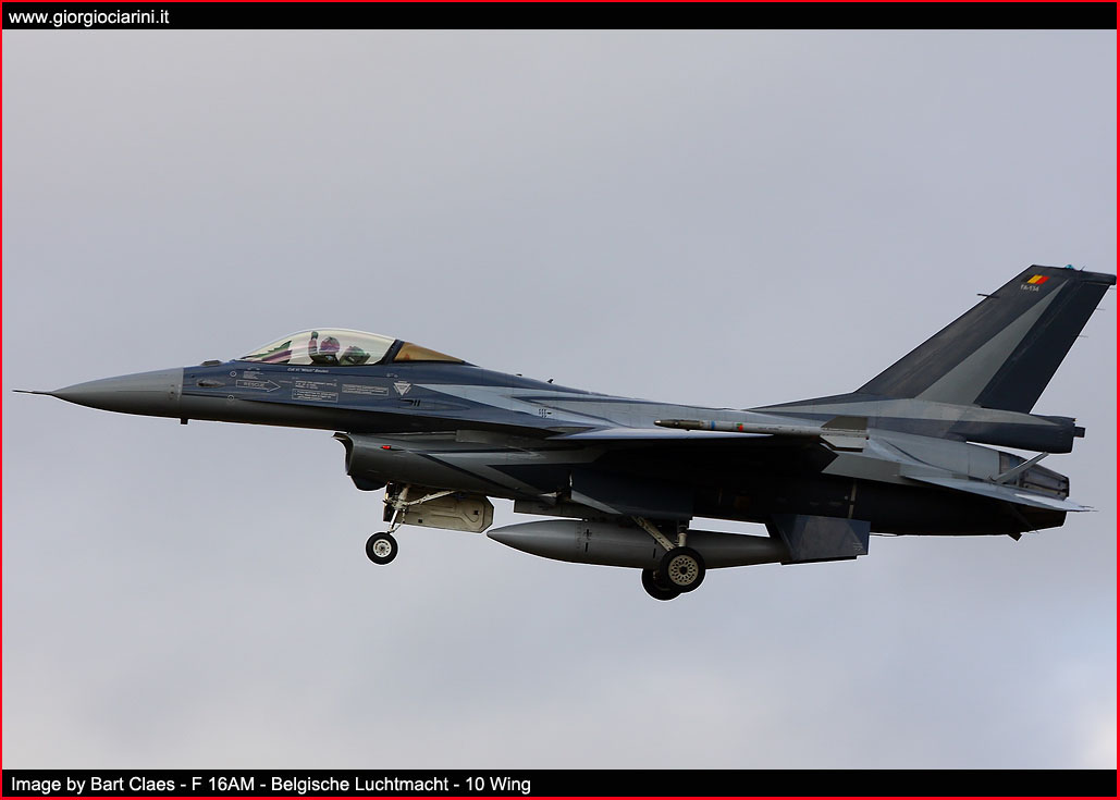| La base aerea di Kleine Brogel si trova nella zona est del Belgio, vicino al confine con l'Olanda, la struttura è sede del 10 Wing che ha alle proprie dipendenze i seguenti Squadron: 31ste Smaldeel "Tijger", 349ste Smaldeel "Goedendag" e l'OCU (Operational Conversion Unit), il 10 Wing è parte integrante del Belgium Air Component (COMOPSAIR). Con questa serie di immagini abbiamo voluto evidenziare la normale attività svolta nel corso dell'anno 2009, la maggior parte di queste immagini sono fatte in testata pista, testata 23 oppure testata 06, e ritraggono per la maggiore velivoli dislocati sull'Aeroporto, mentre altre ritraggono velivoli di passaggio sia della Forza Aerea belga che di Forze Aeree straniere. Le ultime immagini sono dedicate ai velivoli speciali con i colori del 31° Squadron Tiger, tra cui l'esemplare denominato "Blackbird" che ha partecipato al Tiger Meet 2009 organizzato proprio a Kee Bee. |