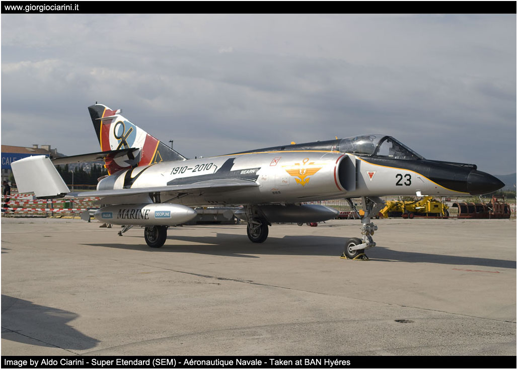 Naval aviation took its first primitive steps in November 1910 when an American pilot, Eugéne Ely, performed the first take-off from the U.S. Navy warship “USS Birmingham”; at the beginning of 1910 the French Naval ministry, firmly convinced of the potential offered by aviation, sent seven of its young officers on a flying training course, while in December 1910 the Marine Nationale acquired its first aircraft, a Farman biplane. These early developments laid the ground for what would become the Aeronautique Navale. The milestone of a century of existence could certainly not be celebrated without a dedicated "aviation" event, held on 13 June at BAN Hyères near Toulon; the location was dictated by historical precedence, as at the base, on 26 February 1924, the (CAM) Centre d’Aviation Marittime du Palyvestre was created. Before entering into detail about the celebratory event, it is worth examining the salient events of the force's past one hundred years. The “Foudre”, an ancient destroyer, was, following some modifications completed in 1911, the first ship utilised to support seaplane operations by the French Navy. It was 1914 when an aircraft made the first take-off from a flight deck installed on the same ship, while the first landing occurred in 1920. On the outbreak of the First World War the Aeronavale's fleet comprised 25 airships and just over one hundred staff: its principal mission was reconnaissance. By the end of the conflict the force had increased to 1,260 seaplanes and 200 airships, with a staff of 630 aircraft pilots, 104 airship pilots, and 11,000 support personnel. Only in 1927 was a proper aircraft carrier introduced, the “Bearn”, but it was the Second World War that would demonstrate the French Navy's need to increase its fleet. Great Britain ceded an old cargo ship that had been converted into an escort carrier, baptised “Dixmude” in April 1945. In the following year the British also loaned the “Colossus” light carrier for five years. In 1951 this was transferred to the French, who named the ship “Arromanches”. The Americans transferred the “Langley” in 1951, which was re-baptised “La Fayette”, and in 1953 the USA passedon the “USS Belleau Wood” re-baptised “Bois Belleau”. The first aircraft utilised were the Dewoitine D1.C1 (1927-1932), Breguet 521 Bizerte (1935-1942), Latécoère 298 (1938), Glenn Martin 167 (1940), Hudson (1940), Wellington (1943-1952), PBY5A Catalina (1944-1951), Seafire (1946-1950), Dauntless (1944-1949), Helldiver (1949-1951), Bloch 175 (1947-1952), Hellcat (1950), Avenger (1951-1960), PB4Y Privateer (1951-1961), Lancaster (1952-1958), Corsair I (1952-1964), and Neptune (1958-1983). In 1955 (1955-1966) the first jet aircraft, the Aquilon (1955-1966 DH Venom NF-2) entered service, but could not be embarked until the arrival of the “Clemenceau”. 1954 saw the Aeronautique Navale accept its first helicopters, the Piasecki HUP-2, intended to undertake rescue operations during maritime operations, and the Vertol-Piasecki H21C Banane (1956-1960), utilised for transport and assault missions. The principal events which have characterised the operations of the Aeronavale have been the war in Indochina between 1945 and 1956, the Suez crisis in 1956, and the intervention in Algeria between 1956 and 1962. A further important event to mention was the first deck landing by a jet aircraft, conducted on the Clemenceau on 5 April 1960, still undergoing sea trials prior to entering service on 22 November 1961: this opened the doors to the use of more modern aircraft, like the Etendard IVM (1961-1980), CM 175 (1959-1995) and Vought F-8E (FN) Crusader (1965-1999); in 1956, coincidental with the first jet aircraft, the first turbine powered Alouette II helicopter entered service: other rotary winged types which would serve with the French Navy included the S 55 (1958-1960), and S 58 (1960-1979). The meeting was organised to include both a significant historical component, intended to remind visitors of the hundred years of history and an indication of the links developed with the naval forces of other friendly nations: Spain, Italy, United States, Great Britain, and Germany. Anchored in the bay off Toulon were the carriers USS Truman (USA), Charles de Gaulle (France), Principe de Asturias (Spain), Argus (United Kingdom), the frigates Essen (Germany), Forbin (France), Normandy (USA), the missile launcher Norman (USA), and the assault ship Foudre (France). The display was opened with the take-off and a few flypasts of a replica Bleriot XI-2 from the Amicale Jean Baptiste Salis collection, followed by a series of vintage aircraft, some in the colours of the Aeronavale, like the Corsair and Avenger, and others in their original paintwork, like the Spitfire or Ju 52. Some 33 civilian aircraft were also on the ramp. The exhibitions of the “old timer” were mixed with those of the Patrouille de France and a Rafale, representing the Armée de l’Air, while the Armée de Terre flew a demonstration with a Tigre helicopter from the Le Luc training centre. The United States Navy was present in strength, represented by a selection of aircraft deployed from the “USS Truman” Carrier Air Group, a C 2A Greyhound, SH 60B Seahawk, E 2C Hawkeye, and F 18E/F Super Hornet. The American naval aviators also participated in the flying display, with the departure of a pair of Super Hornet, which then performed a few flypasts in tight formation. An AV 8B of the Spanish Navy provided an excellent demonstration of the characteristics of the aircraft in vertical flight. The British, Germans and Italians limited their presence to the static display, bringing Harrier, EH 101, Jetstream, and Atlantic; other vintage aircraft on show were a Noratlas and two C 47 Dakota, while the example of the FW 190, during the practices on Saturday 12 June, suffered an engine failure, making, thanks to the skills of its pilot Marc Mathis, safely ditched on the m