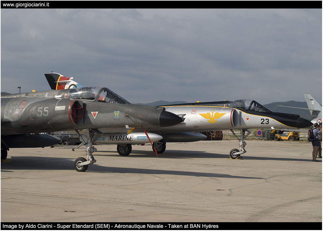 La manifestazione è stata aperta con il decollo ed alcuni passaggi della ricostruzione di un Bleriot XI-2 dell’Amicale Jean Baptiste Salis, seguito da tutta la serie dei vintage, alcuni nei colori dell’Aeronavale come il Corsair e l’Avenger, altri nei colori originali come lo Spitfire o lo Ju 52, ben 33 velivoli civili erano presenti sul piazzale, le esibizioni degli “old timer” venivano intervallate dalla Patrouille de France e da un Rafale in rappresentanza dell’Armée de l’Air, mentre l’Armée de Terre ha effettuato una dimostrazione con un elicottero Tigre del centro di addestramento di Le Luc. Massiccia presenza della marina statunitense con la rappresentanza di un gruppo imbarcato sulla “USS Truman” con C 2A Greyhound, SH 60B Seahawk, E 2C Hawkeye, F/A 18E/F Super Hornet, gli aviatori di marina americani hanno contribuito alla dimostrazione in volo con la partenza della pattuglia di Super Hornet che effettuava alcuni passaggi in formazione stretta. Non poteva mancare l’AV 8B della marina spagnola che ha messo in evidenza le caratteristiche del velivolo a decollo verticale; inglesi, tedeschi ed italiani si sono limitati alla presenza in mostra statica con Harrier, EH 101, Jetstream, Atlantic; altri vintage presenti erano un Noratlas, due C 47 Dakota, mentre l’esemplare del FW 190, durante le prove di volo di sabato 12 giugno, ha sofferto una piantata motore e con notevole capacità del pilota Marc Mathis è stato condotto all’ammaraggio sul basso fondale prospiciente la base aerea, immediato l’intervento di alcune persone con degli scooter marini che l’hanno estratto dall’abitacolo in ottime condizioni, contemporaneamente è avvenuto il decollo su scramble del Dauphin, in stand-by, sulla base per l’intervento di soccorso. La mostra statica era completata con un esemplare di ogni velivolo in dotazione alla Aeronautique Navale, alcuni con la speciale livrea del centenario, il clou della dimostrazione in volo è stata dei padroni di casa con formazioni miste di Super Etendard Modernisè, Rafale M, E 2C, rifornimento in volo tra due SEM, simulazione di operazioni di salvataggio e Combat SAR con elicotteri Phanter, Lynx e Alouette III. Una particolare menzione và all’organizzazione, per quella parte dedicata agli Spotter, gestita in maniera veramente impeccabile, sia per la disponibilità del personale che per la sistemazione logistica, nonché per la gradita “sorpresa” dell’estensione anche alla domenica dell’ingresso all’area predisposta per i fotogiornalisti |