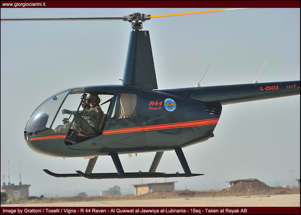 The training requirements for new helicopter pilots are satisfied by four Robinson Raven R44 (L-1501/L-1504), serving with 15 Squadron at the Rayak flying school, and which constitute the most modern trainer presently serving with the force.