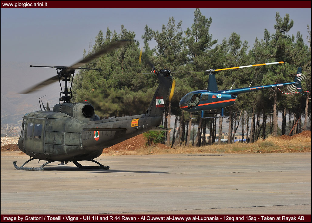 The FAL could certainly not lack the robust and reliable workhouse helicopter that only the Bell UH-1H has proven to be; between 1995 and 2001 some twenty four examples (L-1001/L-1012, L-1101/L-1112) drawn from surplus U.S. Army stocks have been used to arm four Squadrons, 10, 11, 12 and 14. Used intensively for transport and supporting ground forces, they can also be armed with SNEB Matra 68mm rocket launchers and machine guns: in particular, during the battle of Nahr el-Bared in the summer of 2007 they were transformed into real bombers. The requirement to destroy the many fortified bunkers present in the area forced the FAL to modify a few UH-1H to be capable of carrying a payload of two free-fall 227 kg bombs and one 400 kg bomb. In this decidedly unusual, but profitable role, the results obtained by the Huey were so successful that the many missions flown continued for a period of some three months.