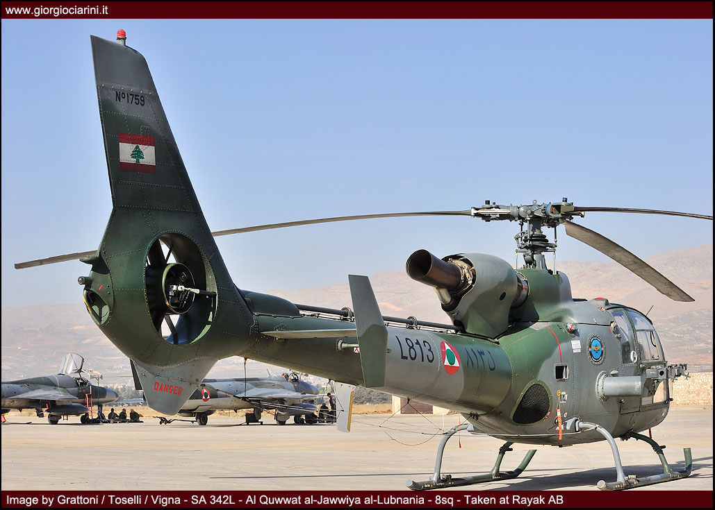 La componente elicotteristica, che sarà ripresa e potenziata in anni più recenti, fece la sua comparsa tra il 1959 ed il 1960 con l’acquisto in Francia di quattro SA-318 Alouette II (L-201/L-204, poi L-301/L-304) e di ben 14 SA-319 Alouette lll (L-220/L-233, poi L-320/L-333) in due lotti sempre nel ‘61 e poi nel ’69. In quell’occasione sulla base di Beirut vennero costruite le infrastrutture necessarie per ospitare il 3° Squadron che venne appunto costituito con i nuovi elicotteri a Rayak.