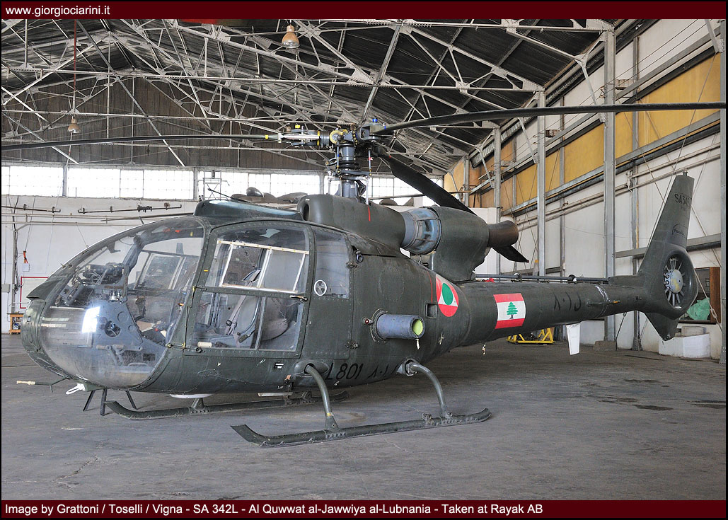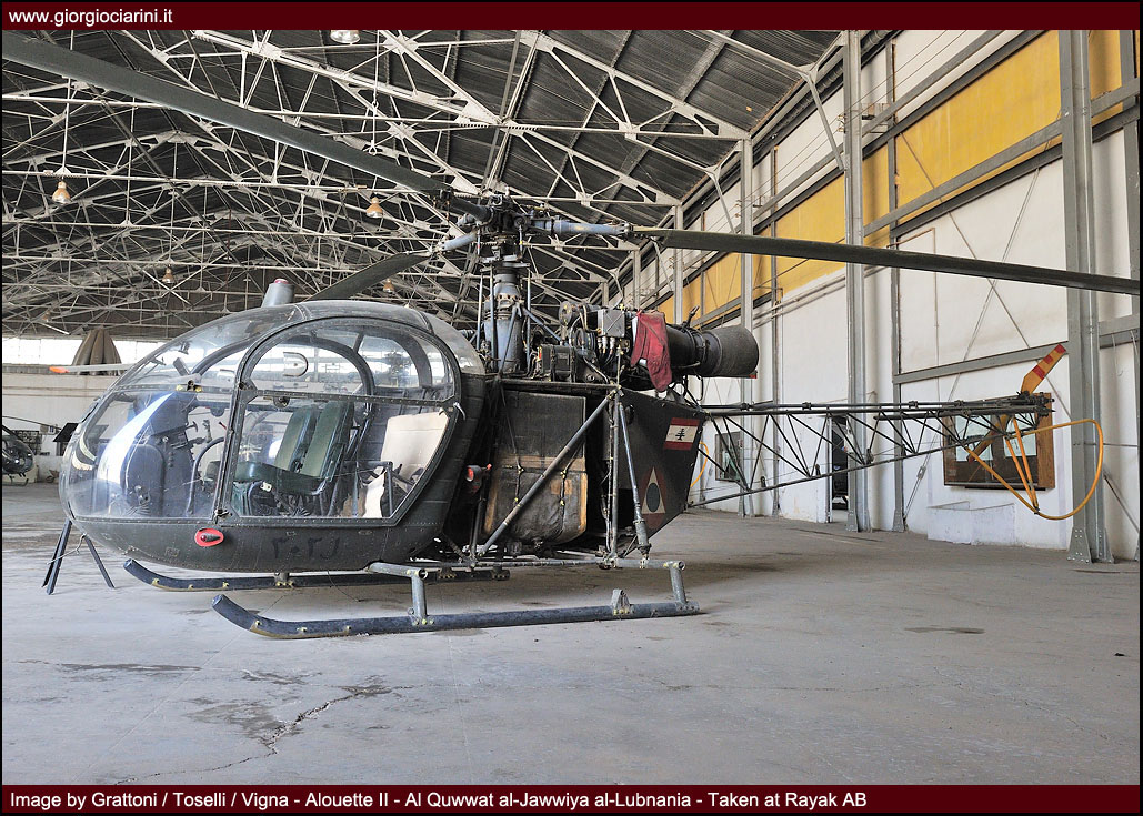 The helicopter component, which would be revived and reinforced in more recent years, made its first appearance between 1959 and 1960, following the purchase in France of four SA-318 Alouette II (L-201/L-204, later L-301/L-304) and some fourteen 14 SA-319 Alouette lll (L-220/L-233, later L-320/L-333) in two batches, one in 1961 and the other in 1969. On that occasion, the Beirut base was reconstructed to accommodate the infrastructure necessary to house 3 Squadron, which had been newly created to operate the new helicopters at Rayak.