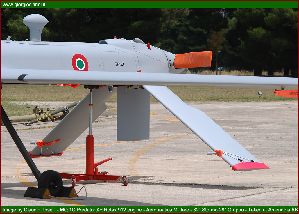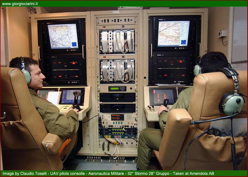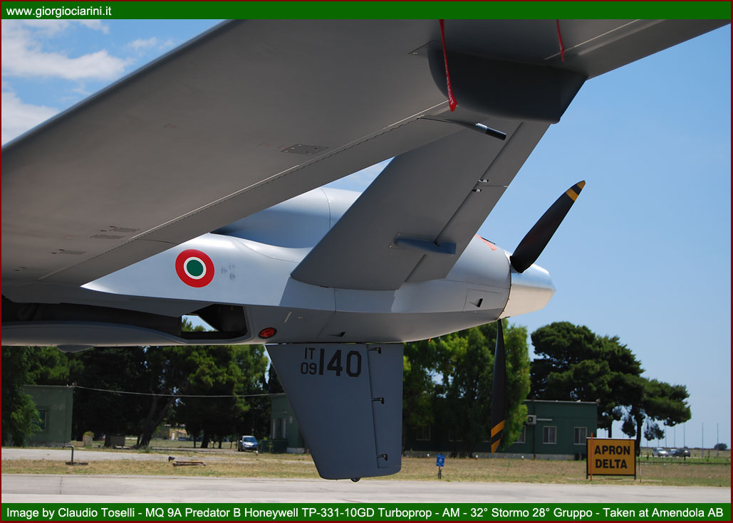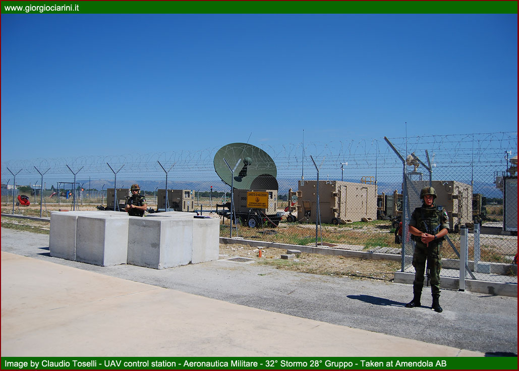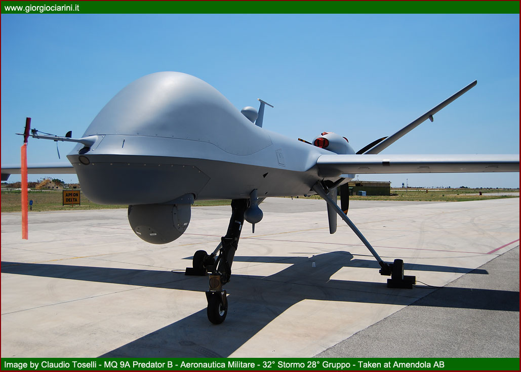 On Tuesday 28 June, the Stato Maggiore Aeronautica organised a “Media Day” at the Amendola, inviting a selection of specialist journalists from the aviation sector, amongst whom was a representative from www.giorgiociarini.it. The motive behind this event was the presentation of the new UAV (Unmanned Aerial Vehicle) MQ-9 Predator B (Reaper) model, serving with the Aeronautica Militare, and recently delivered to the 28° Gruppo Velivoli Teleguidati of the 32° Stormo. The opportunity was also taken during the occasion to deliver an outline of the activities performed in this particular arena by remotely piloted aircraft, and especially concerning their use in operational theatres, such as, in the past, Iraq, and, at present, in Afghanistan, where the systems have achieved more than satisfactory results. The Predator programme was derived from the requirement to deploy a modern and effective UAV component. These particular aircraft was capable of conducting extended duration surveillance and reconnaissance missions over wide areas or specific positions, benefitting from the fact that the piloting and management of the sensors is performed from a ground station via dedicated electronic links. From 2001, the Aeronautica Militare launched its Predator A programme, with the intention of acquiring some initial experience in the sector, and with the specific intent of developing long range surveillance and reconnaissance capabilities. The programme envisaged the acquisition of six RQ 1B and two ground control stations. On the occasions of the arrival of the first examples, in December 2005, the 28° Gruppo Velivoli Teleguidati “Le Streghe” as re-constituted, and posted to Amendola under the control of the 32° Stormo. The 28° Gruppo had formerly operated under the 3° Stormo at Villafranca until being placed ‘in quadro’ in 1997. A remotely piloted aircraft system comprises four individual elements: the aircraft, the sensors or payload, the ground station for the control of the asset, and the telecommunications segment for the exchange of data. The Predator A aircraft is 8.2 metres long, 1.82 metres high, and has a wingspan of 14.8 metres. It can carry up to 300 kg of fuel, which enables it to remain in flight for over 20 hours, maintaining a speed of 135-160 Km/h and operating at altitudes up to 8,000 metres. The aircraft is fitted with electro-optical and infra-red sensors which permit it to conduct missions in any lighting condition. Its photographic system comprises a MTS-A EO/IR TV camera. It is, furthermore, equipped with a Lynx SAR (Synthetic Aperture Radar) capable of detecting both moving and static surface targets, a SIGINT/ESM (Signal Intelligence — Electronic Support Measures) system capable of gathering information through the analysis of signals, and finally a GPS (Global Positioning System) and an INS (Inertial Navigation System). Both aircraft and sensors are managed from a GCS (Ground Control Station), which comprises a group of sub-systems and workstations utilised for the planning and conduct of the mission. The station is simply a shelter, which can be carried on a truck, fitted with two synthetic aperture radars and a satellite receiver, three mission-management consoles (one for the pilot, one for the sensor operator, and a multi-function position). Control is achieved through either a LOS (Line of-sight) connection using a C-band data-link or with satellite control, using the Ku band. The telecommunications segment guarantees in real time the guidance of the aircraft from the ground control station and, in the opposite sense, the flow of video imagery from the reconnaissance and surveillance systems. In 2004, at the end of deliveries of the first system and the qualification of the personnel, the Stato Maggiore decided to send the Predator A to the Iraqi operational theatre with the aim of supporting and protecting the Italian contingent stationed in the country, a mission which was concluded in 2006. While the Predator, engaged in Afghanistan since June 2007 as part of the ISAF (International Security Assistance Force) mission, has continued these activities in the same way as in the previous Iraqi theatre, conducting aerial reconnaissance in particular environments where, due to the particular topography of the territory, communications are inadequate or difficult, while both climatic conditions and hostile threats remain strong. The presence of UAVs is particularly important to the forces on the ground. The use of the Predator A in Iraq and Afghanistan has demonstrated the high level of effectiveness of the system, in virtue of the possibility to remain for long periods over areas under surveillance while not staying excessively close to the area of interest, and delivering high definition real time imagery to the troops on the ground. These notable characteristics of the aircraft were also utilised on the occasion of the Italian-Russian summit held in Bari in 2007. In May 2011 the Predators assigned to Task Group “Astore”, inserted into the Joint Air Task Force (JATF) reporting to the Regional Command at Herat exceeded 6,000 flying hours, achieved in more than 750 missions flown between 2007 and the present day on behalf of the Italian and allied contingents of the ISAF. With the passage of time, the system has been updated to improve both its performance and to eliminate some characteristics which are already proving obsolescent. In 2009 it was decided to undertake an “upgrade” classified as A-Plus: this variant was used operationally for the first time during the G8 Summit in l’Aquila, and is presently operational in Afghanistan. The excellent results achieved to date have driven the considerations surrounding an increase in operational capability, already well proven with the Predator A, through the acquisition of an aircraft with an overall superior capacity. In current operational scenarios, the military instrument is required to deliver a 