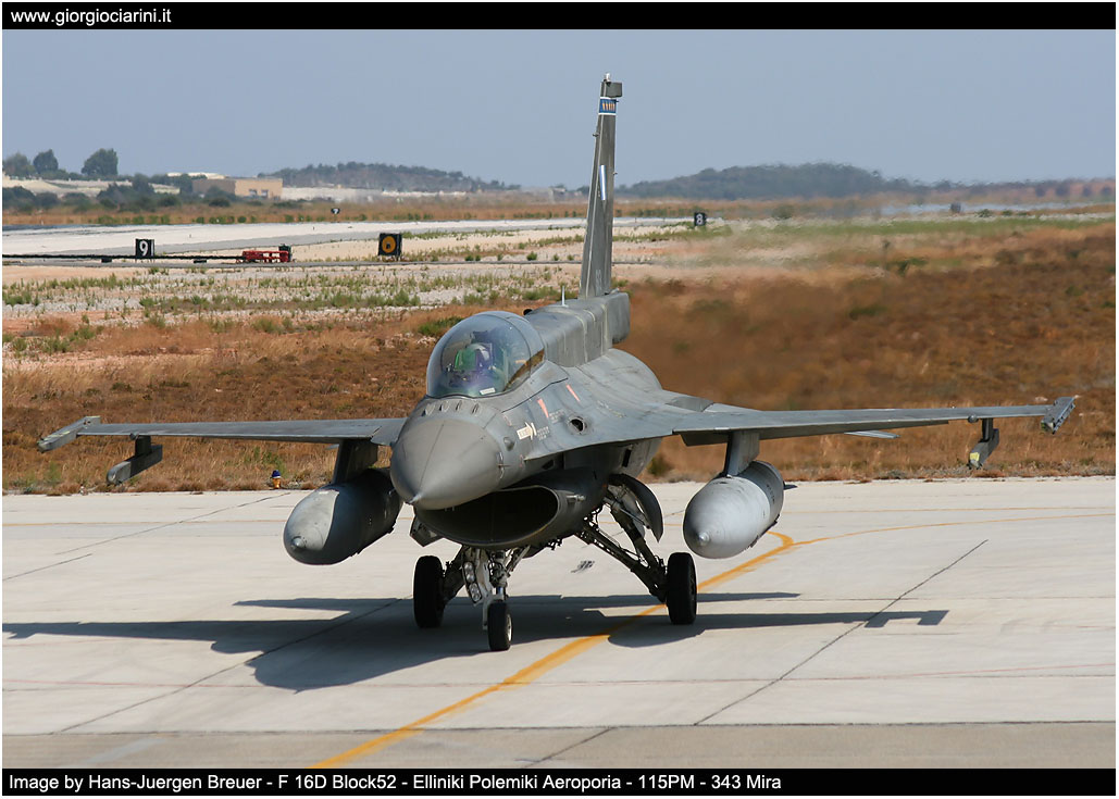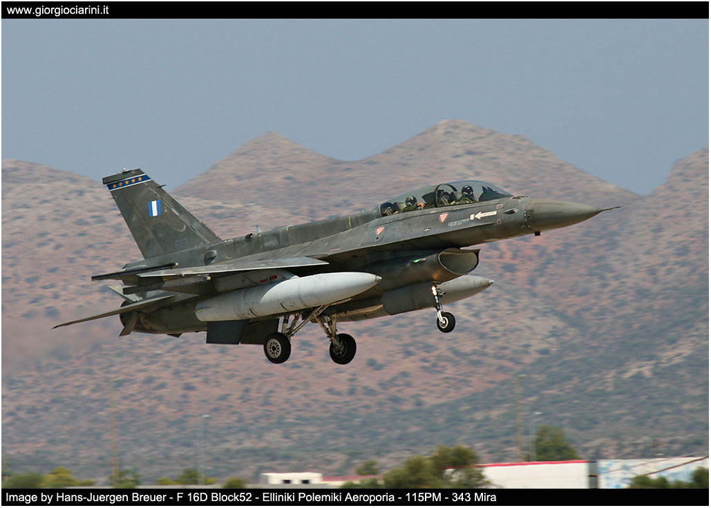 The Souda airbase is located on the western part of the island of Crete (Greece). Crete is the fifth largest of the Mediterranean islands, and is situated south of the Greek mainland. It has a long narrow profile, and separates the Aegean from the Libyan sea. In the main, its topography is mountainous, and the low lying areas constitute minimal part of the entire surface area. The strategic position of the island results in it being one of the most important NATO facilities in the Mediterranean. Amongst these are Souda Bay, home of an important base for the Greek Navy and other NATO structures such as the Forward Logistic Site Souda Bay (FLS Souda Bay), reporting to COMNAVSOUTH (Commander Allied Naval Forces Southern Europe) and, since 2007, the NATO Maritime Interdiction Operational Training Centre (NMIOTC). To the north of Souda Bay a missile firing range designated the NAMFI (NATO Missile Firing Installation) has been established; the NMFI is a training facility utilised by many nations who are part of the Atlantic Alliance to test their missile defence systems (Patriot, Hawk etc.). One of the common features of Greek airports are the dual military/civil operations, and Chania falls within this scope; in fact, after Heraklion, it is the second airport on the island open to commercial traffic. The Greek Air Force (Elliniki Polemiki Aeroporia/Hellenic Air Force) is present at Souda Bay with the 115 PM (Command Wing), which reports in turn to the Tactical Air Force (Larissa). The115 PM parents two Squadrons, 340 (Fox) and 343 (Stars/Asteris) Mira, both equipped with F 16C and D in Block 50/52 versions. The 340 Mira was established in April 1953, initially equipped with F-84G, while in the September of the same years the unit was re-equipped with F-84F. In 1966 the 340 Mira acquired the fighter-bomber role to add to its established bomber role, and in August 1975 commenced conversion onto the new A 7/TA 7 Corsari II. In March 2003 the A-7 were retired, and replaced by the new multirole F-16 Block 52+ fighter. The 343 Mira was constituted at the Elefsis base with a fleet of F-86E Sabre, initially operating in the daylight interceptor role. In 1961, with the arrival of the new F-86D the unit acquired all-weather capability. In March 1966 the first F-5A/B arrived, which performed a primary day interceptor duty and a secondary fighter-bomber duty. In March 1001 the unit was deactivated, but on 21 July 2003, with the arrival of the current F-16 Block 52+ the 343 was declared operational again at its new home at Souda Bay, operating in the same role as the 340 Mira. Besides the two units at Souda Bay, in March 2010 the Demo Team “Zeus” was activated, tasked with displaying an F-16C at aviation events. The fighter is presently one of those serving with the 340 Sq, and has been specially painted with a stylised flag on the Conformal Fuel Tanks situated above the junction of wing and fuselage. In conclusion, it must be noted that the Souda Bay air base also houses a logistics support facility of the United States Navy (US Naval Support Activity Souda Bay).