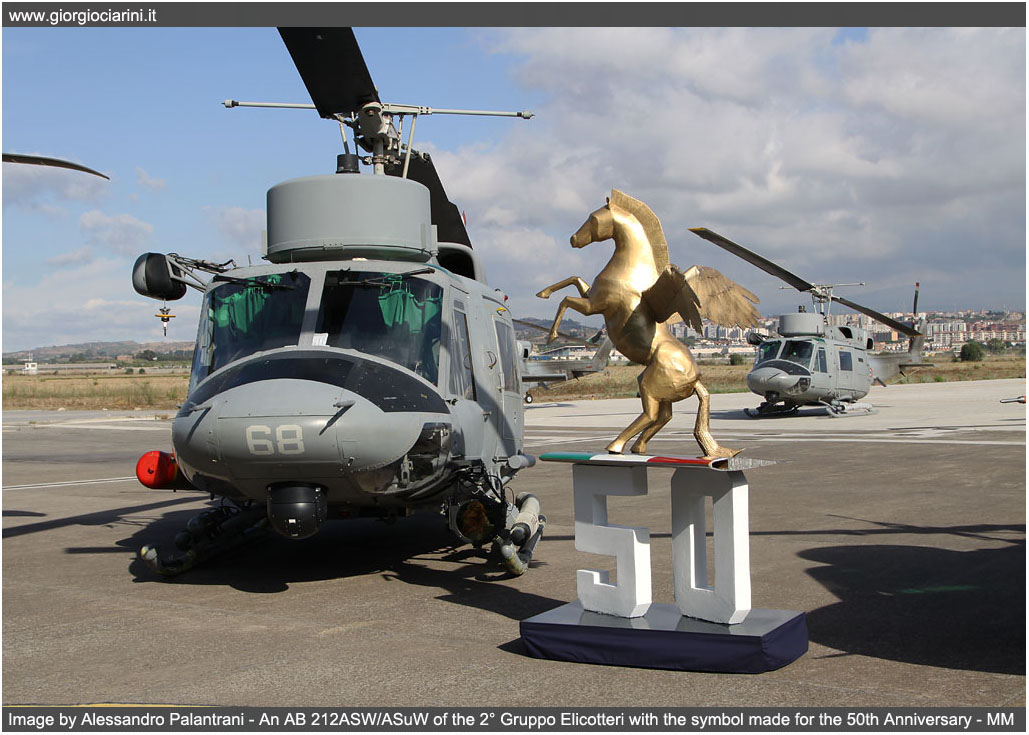 Friday, September 26 2014, took place, at Catania Stazione Elicotteri (Maristaeli Catania or Helicopter Station) the ceremony with which he celebrated 50 years of activity of the 2° Gruppo Elicotteri (2° Helicopter Squadron). The ceremony was attended by the Commander of the Air Forces of the Marina Militare (Italian Navy) Rear Admiral Giorgio Gomma, the Maritime Commander Sicily Rear Admiral Roberto Camerini and the Commander of the air base Captain Andrea Cottini; In addition, civil, military and religious authorities were present, as well as a large representation of flight veterans. On Saturday, September 27 2014, the open day in Catania remained open to the public, giving visitors the opportunity to move within a path set up for the occasion. The guests have made contact with the aircraft and equipment in use to the Marina staff and have been able to visit the training and training areas, accompanied by pilots and specialists of the 2° Gruppo Elicotteri. The younger guests were also able to experience the simulation of a flight from Catania to the flight deck of a naval unit of the Marina in navigation, thanks to a static simulator specially designed. The 50th anniversary of the 2° Gruppo Elicotteri follows, and makes it an integral history, the fifty years of the foundation in Catania of the Stazione Elicotteri celebrated last year, and mark a milestone of major importance in the centenary history of the Air Force of the Marina Militare. Among the first nuclei of the Air Force of the Marina Militare, the 2° Gruppo was established in Fontanarossa in 1964 with the aim of forming flight crews able to operate from aboard the Naval Units of the Marina Militare to safeguard national interests and the protection of human life. The 2° Gruppo Elicotteri, fully integrated into the social fabric of the city, over the years has been called to numerous interventions in favor of the civilian population and its helicopters have often been used in activities of "Search and Rescue" shipwrecked and missing on Etna; intense, in addition, the work carried out in collaboration with in the Protezione Civile of combating forest fires and supporting the populations affected by natural disasters such as the flood that hit the province of Messina in 2009 or the eruption of Etna in 1983, also known for the first attempt in the world of deflection of the lava flow, operation in which the helicopters of the 2° Gruppo took part active.