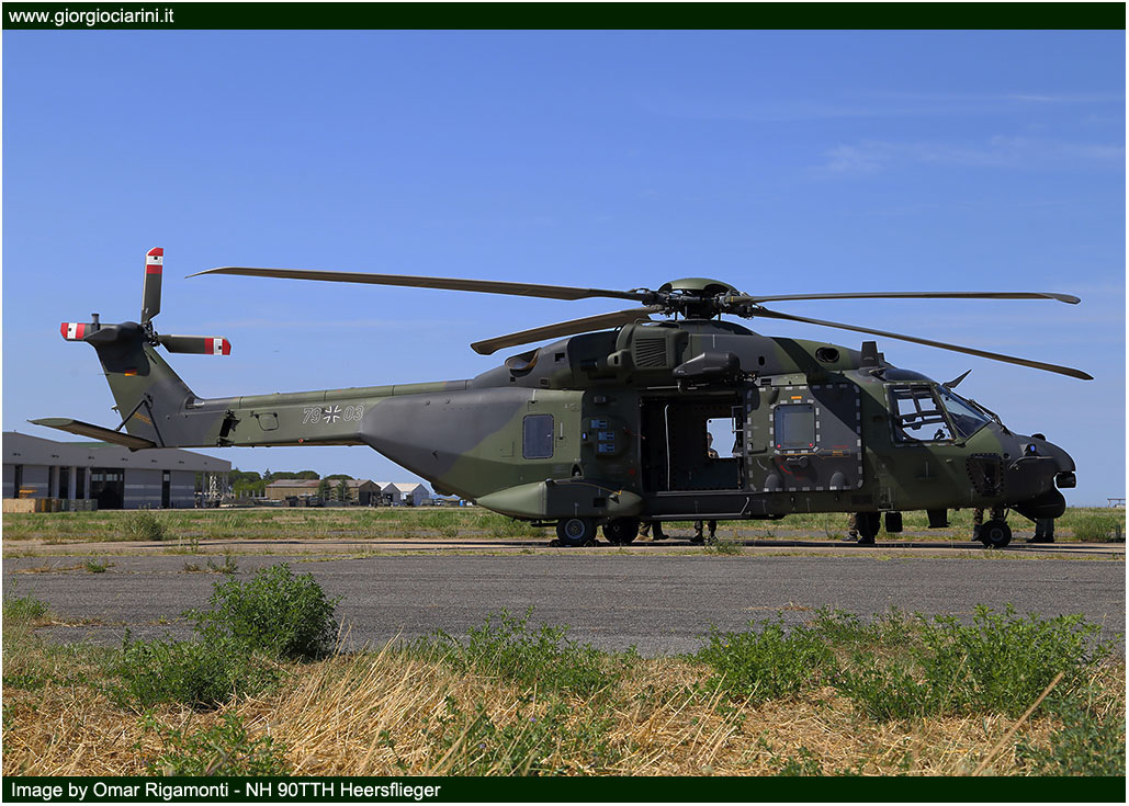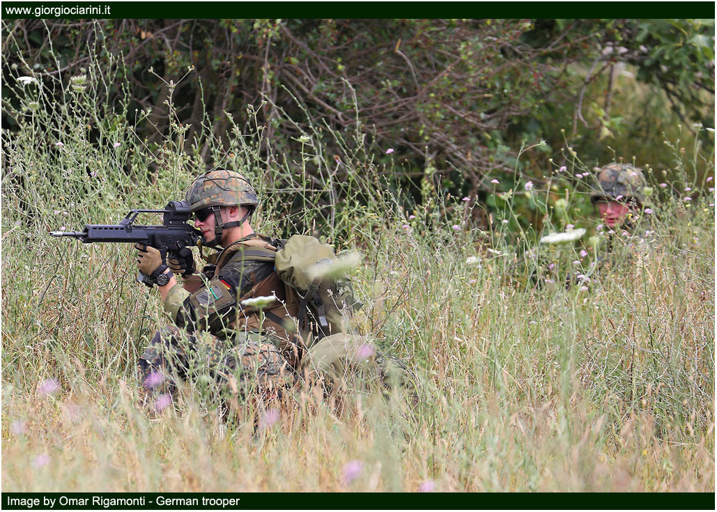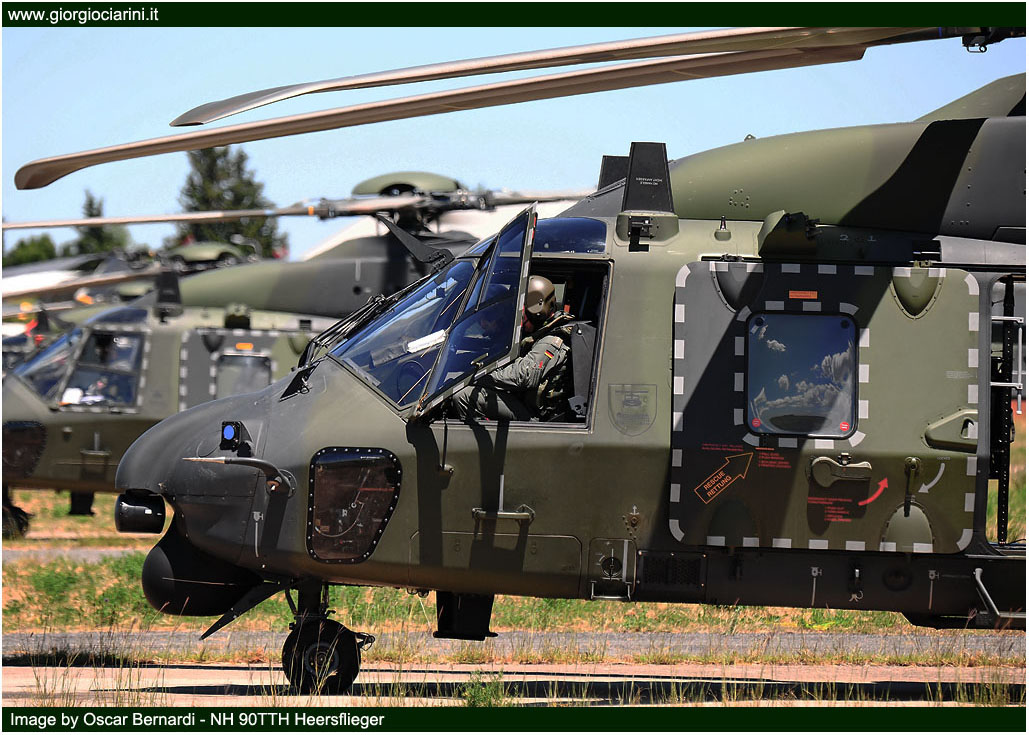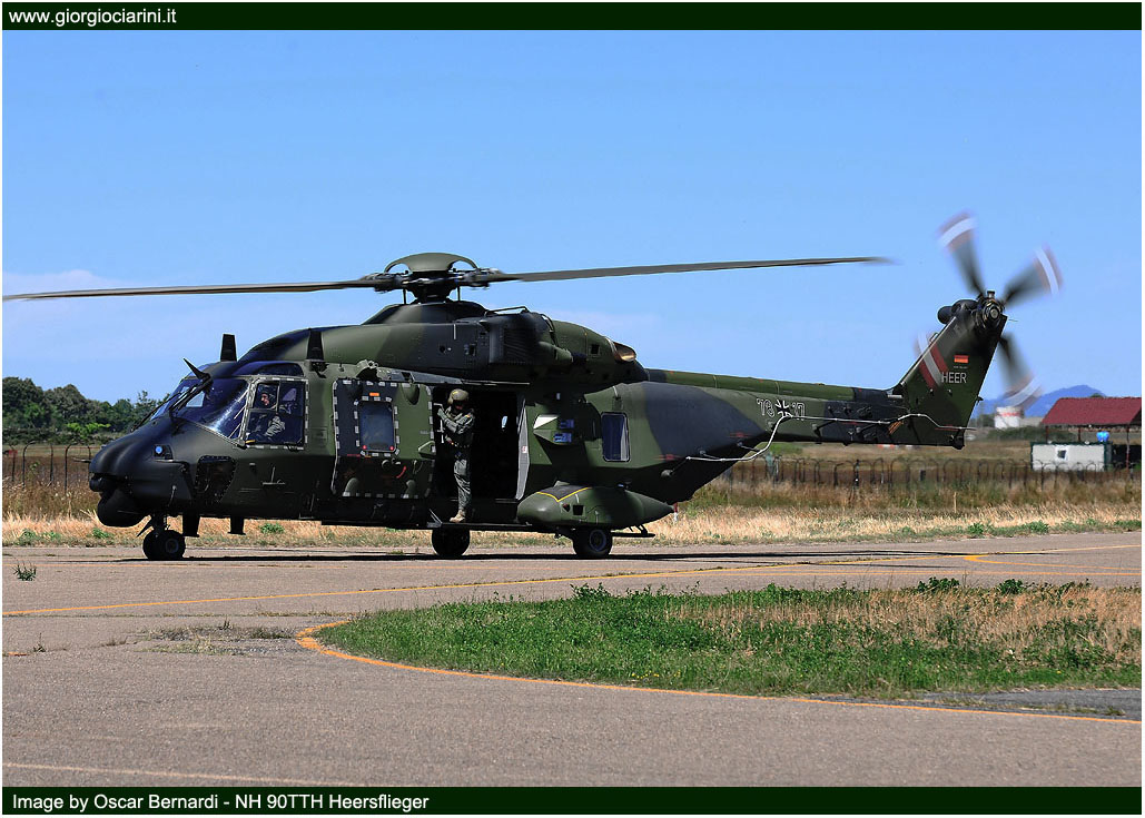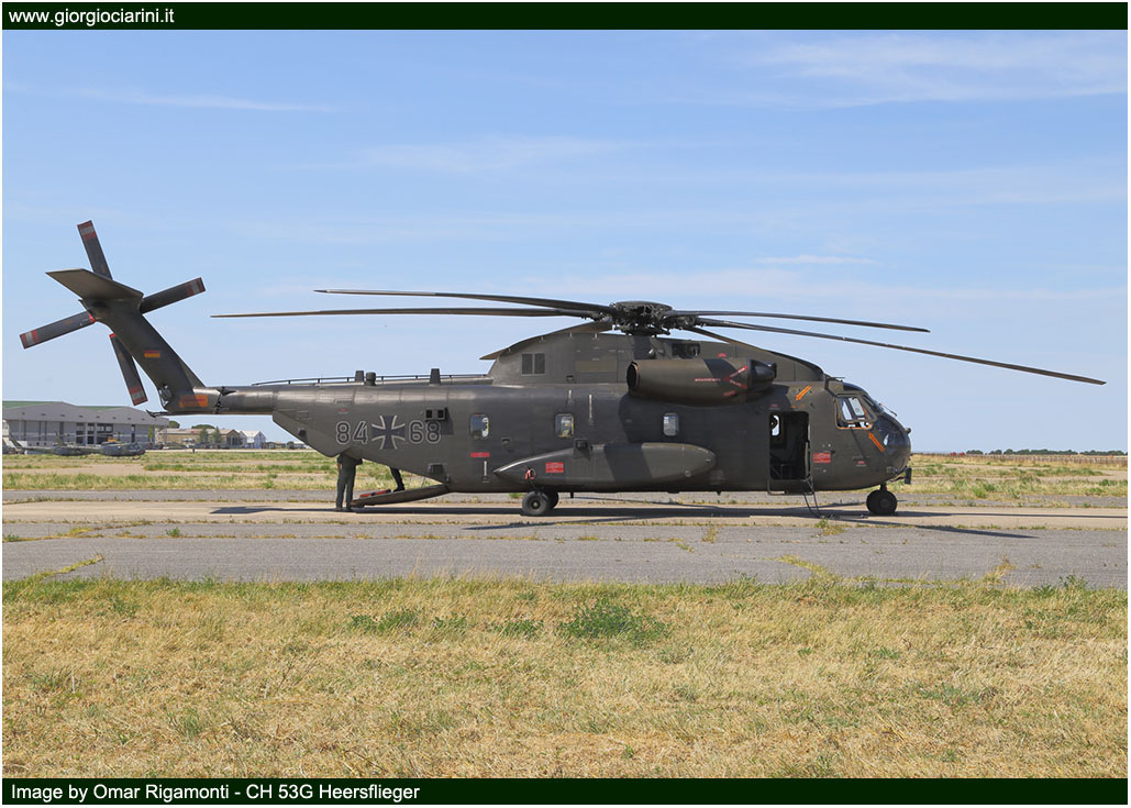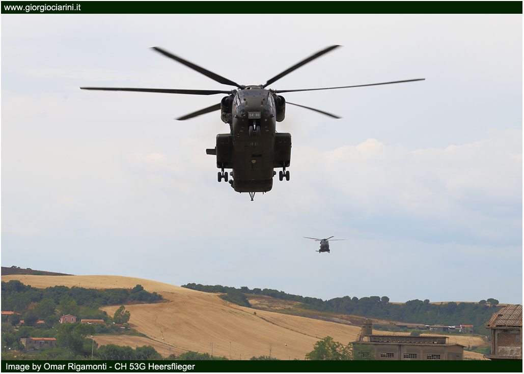 | Lunedì 29 Giugno ho avuto l’opportunità di poter seguire da vicino le operazioni di decollo e atterraggio degli elicotteri dall’aeroporto di Viterbo; nel primo pomeriggio invece ho avuto la possibilità, insieme ad altri fotografi/giornalisti specializzati del settore, di poter prendere parte ad una esercitazione presso il poligono di tiro di Tarquinia (50 km a Ovest di Viterbo) con tanto di elisbarco delle truppe d’assalto, combattimenti simulati a terra e in volo, Medevac e Combat Search and Rescue, dalla durata totale di circa 50 minuti. Durante tale esercitazione sono intervenuti in contemporanea un CH 53G tedesco, un NH 90 dell’AVES, un Mi 17 ungherese e un EH 101 della Marina Militare, con truppe d’assalto a bordo supportati in volo da due Mi 24V della Repubblica Ceca; tre AB 212 austriaci (in ambito Medevac), un Cougar sloveno per il controllo e supervisione del territorio sottostante. |