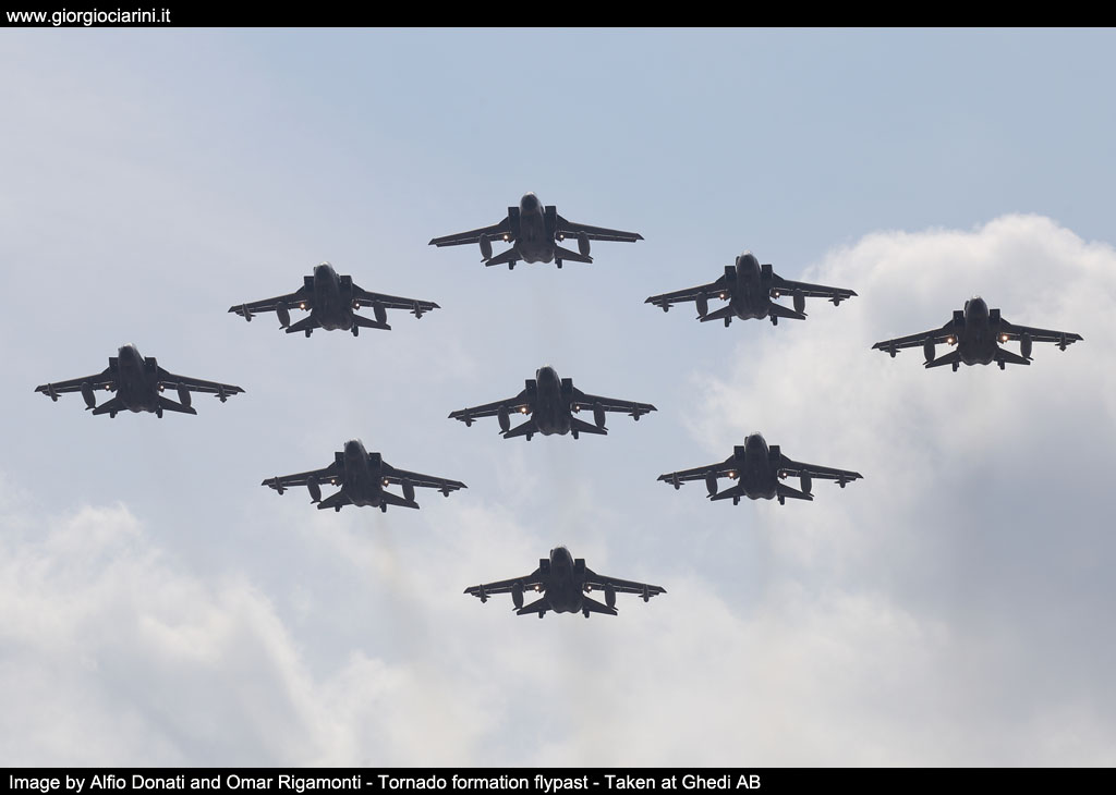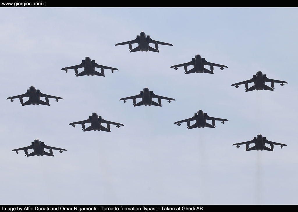 It was the year 1982, 27th August, "Luigi Olivari" military airport - Ghedi, a very important date for the Aeronautica Militare (Italian Air Force), with the landing of the first Tornado aircraft on the Brescia air base, headquarters of the 6° Stormo (Wing), a new era begins for the Aeronautica Militare. The aircraft was assigned to the 154° Gruppo (Squadron), the first unit of the Aeronautica Militare e to receive the new machine and still fully operational today. Since then and for the next 40 years, the 6° Stormo Tornados have carried out tens of thousands of service hours (181,074.48 to be exact) with over 700 trained crews and eleven international operations with the participation of Tornado aircraft. A bit of history: the project birth ... The project was born in the sixties, following the need to develop a new generation of high-performance, multi-role fighter aircraft with flight characteristics in a wide range of altitude and speed profiles. Thanks to the co-operation between the aeronautical industries of Germany, Great Britain and Italy, the “Tornado” aircraft took shape in July 1968 as MRCA (Multi Role Combat Aircraft). A two-seater aircraft with pilot and navigator, twin-engine, with high swept wing and variable geometry, large single vertical fin, side air intakes of sophisticated design, with all-weather capabilities. The flight tests began in August 1974. In Italy, the first operational example was officially delivered to our Experimental Flight Unit (RSV) at Pratica di Mare in March 1981 (with the then Chief of Staff General Bartolucci on board). The Aeronautica Militare received 100 Tornados in the IDS (Interdiction / Strike) version, 16 of which were then brought to the ECR (Electronic Combat Reconnaissance) configuration, operational since the late 90s. The "Tornado" was and still is an excellent interdiction aircraft, capable of operating at high speed and at very low altitude, following the terrain orography thanks to the Terrain Following Radar (TFR); an excellent aircraft for tactical recon and the suppression of enemy air defenses. The Italian Tornados have participated in various military operations abroad: "Locusta" operation in 1990-91 in Kuwait, in the Balkans between 1993 and 2001 with various operations, "Sharp Guard", "Deny Flight", "Decisive Endeavor", "Deliberate Guard "," Deliberate Force "," Deliberate Forge "and" Allied Force ", in Afghanistan in 2008 with the" ISAF "operation and in 2011 in Libya with the" Odyssey Dawn " and subsequently " Unified Protector " operations, in 2014 and 2020 with the "Inherent Resolve" operation against the Islamic State of Iraq and Syria. Tornado technical features: - min./max. wingspan 13.91 / 8.60 m - length 16.70 m - height 5.95 m - maximum take-off weight 28,000 kg - power plant, two Turbo Union RB.199 Mk.103 turbofans of 7,260 kg / s with afterburner - maximum speed at low altitude, about 1,480 km / h (1.2 mach) - ceiling 15,000 m - range 3,800 km (transfer) - crew, 1 pilot, 1 navigator - armament: 2 cal. 27 mm guns (1 on IT-ECR), up to 9,000 kg of external loads (auxiliary tanks, reconnaissance pods (Reccelite) and target designation (Litening), AIM-9L Sidewinder air-to-air missiles, etc.).