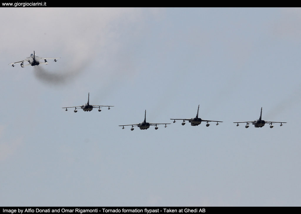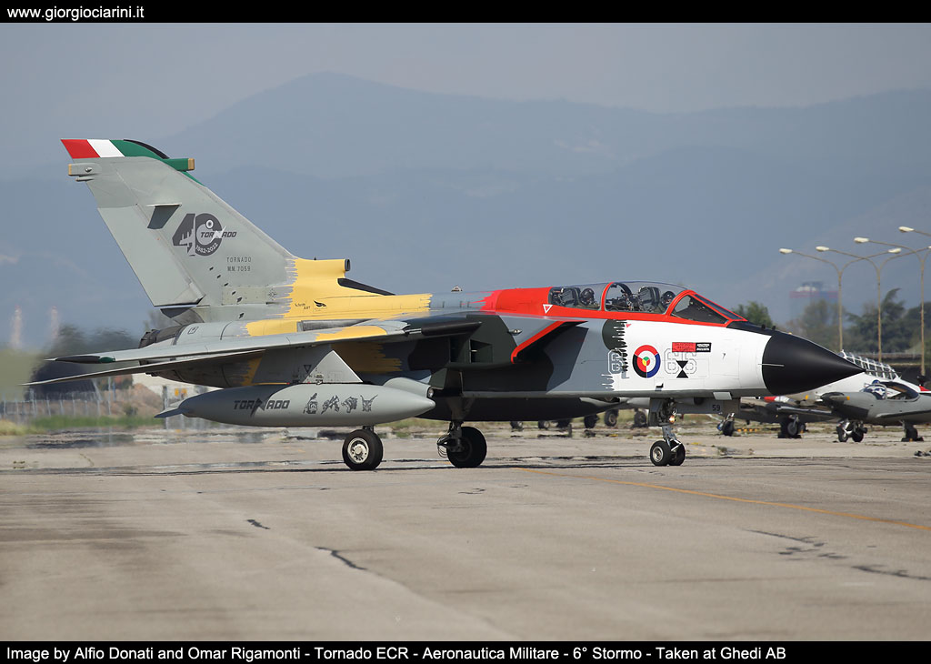 8th September event Despite a short rain by mid morning (fortunately just before the flights over the air base), and despite bad weather forecasts, Ghedi airport welcomed almost 5,000 people, a mix of former flight crews and former specialist personnel that over time have worked with the Tornado, yesterday’s and today’s "Red Devils" and personnel in service in organizations present on the Ghedi grounds, civilian staff of Leonardo company on duty at 6 ° Stormo, american personnel of 704th Munitions Maintenance Squadron and about 300 journalists belonging to the various local and non-local press services, to celebrate a surely special birthday: the 40th anniversary of the first landing of the Tornado aircraft. A dense program of events, that first began with the official ceremony (alas, unfortunately under the rain) in the presence of the Chief of Staff of the Aeronautica Militare, General SA Luca Goretti, the Commander of the Squadra Aerea (Air Team), General SA Alberto Biavati, the Commander of the Comando Forze da Combattimento (Combat Forces), General DA Luigi Del Bene and obviously the commander of the 6° Stormo, Colonel Giacomo Lacaita; during the ceremony, General Goretti retraced the operational history of the Tornado, recalling those who lost their lives serving their country over the years. A special note: General Luca Goretti was a Tornado pilot who flew with 156° Gruppo and who has logged about 3,000 flight hours, of which more than 2,000 on the Tornado with the additional qualification on the following aircraft: SF-260, T-37, T-38, G-91T, PA-200, AMX-T, AMX, NH-500, HH-139. After the institutional part, the long-awaited flight program started; a small air show dedicated to the Tornado and the lucky ones that were present. The event kicked off with the Legend formation, featuring G.46-4B, T-6H4M Harvard, MB.326E, MB.326K, SF-260EA, S.208M, MB.339A and T-346, then followed by the take-offs of 10 Tornados that soon flew over the base together with the Frecce Tricolori (to follow, the PAN performed some of its most famous maneuvers). Then the Tornados reappeared for other fly pasts over the air base until their landing, after which it was possible to admire the special color aircraft more closely, to be exact a Tornado ECR with serial number MM7059 and code 6-66, which was painted with a celebrative camouflage that reproduces the four historical liveries of the aircraft, from its beginnings to today, and which bears the insignia of the four Gruppi Volo (Flying Squadron) that have had it in service: the 102° (which performs the task of Operational Conversion Unit (OCU), the 154°, the 155° and the 156°. The color scheme is divided into four phases of its history, the initial one with the experimental livery of the X-586 aircraft also called "Marlboro", given the presence of the white and red colors of the first italian prototype of the MRCA, the standard 80's color scheme with the NATO camouflage (green, grey and silver below), the Desert Storm color scheme adopted by the 16 Tornados used from Al Dhafra air base - United Arab Emirates, during Operation Locusta and the latest standard grey color scheme used by the Aeronautica Militare (Air Defense Grey), with the 40 years logo and the Gruppi Volo symbols on the fin. The special color Tornado was soon surrounded by various cars, part of the “Mille Miglia” competition, showing a partnership that has been consolidated for years. In addition to the aforementioned aircraft, there was on display the first F-35A Lightning II of the 6 °Stormo (code 6-01) that was possible to photograph in one of the tensile structures, together with Tornado coded 6-51, MM55000, with vertical fin painted to celebrate the 40th anniversary of the Panavia and Turbo Union consortia, the latter positioned outdoors. Two german Panavia Tornado IDS aircraft that arrived on the afternoon of the day before the event, were present but not accessible by the audience, and then took off in the early afternoon of 8th September for Büchel. Besides the aircraft that were present, an exhibition area has been set up in the other tensile structures, with all the equipment (both clothing and armaments) supplied with the Tornado aircraft, as well as a cockpit mock-up, books, patches, apparel, stickers, prints etc… etc… of the various Gruppi Volo. "The real goal is to reach 40 years of age in full shape - said the Commander of the 6° Stormo, Colonel Giacomo Lacaita - a machine that is still 100% operational and which the Aeroanutica Militare bases many of its unique capabilities on". Despite everything, the future belongs to the F-35. Currently there are two examples meant for the 6° Stormo (the first one was accepted in June with a ceremony). Both aircraft are currently operating from Amendola air base, home of the 32° Stormo, pending completion of the works on the new facilities in the southern part of the Brescia air base; in November they should be permanently based at Ghedi, starting this way the process of full operational capability. It will therefore be a gradual rotation with the disposal of the old Tornado “serials”, as they reach the limit of their operational life. So, at least another 5 or 6 years, before the final switch to the Lightning II (2027/2028).