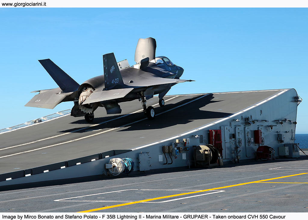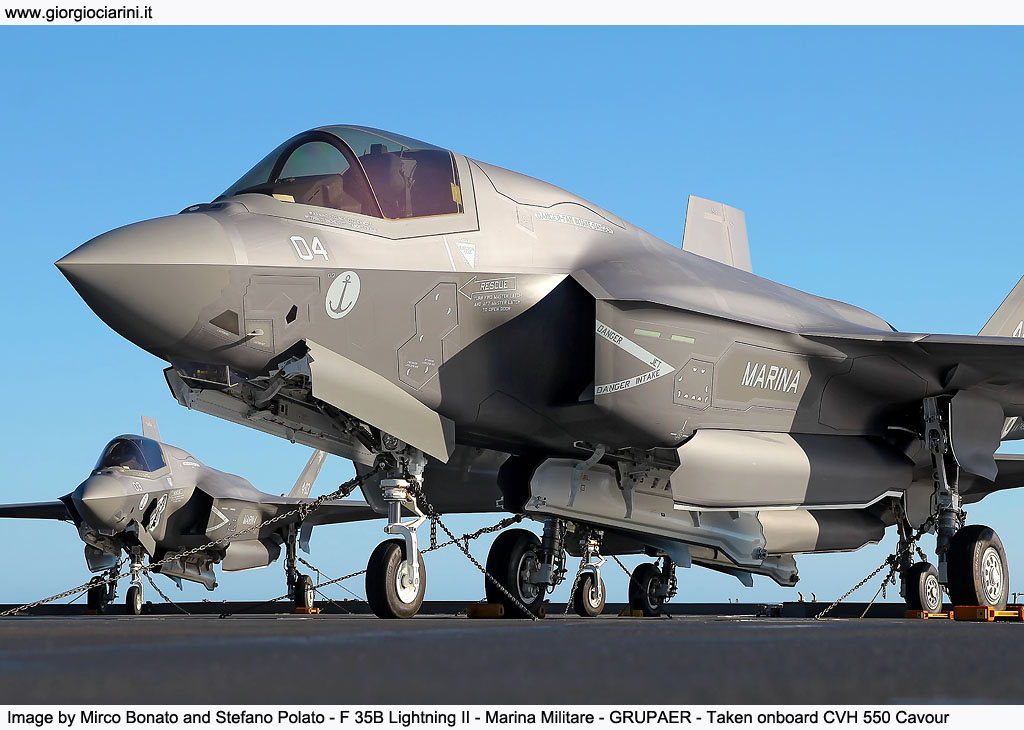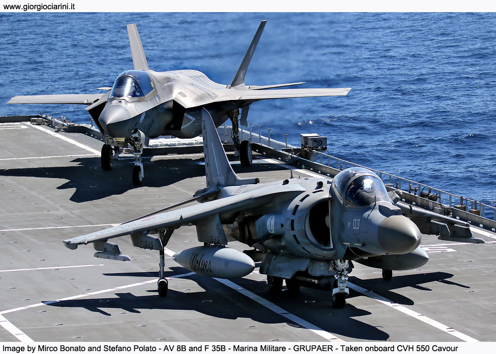 La Portaerei, rappresenta quindi la massima espressione e l’elemento abilitante della cd. capacità “expeditionary sea based”, grazie alle sue intrinseche caratteristiche di proiettabilità, efficacia e di autonomia logistica in qualsiasi contesto aeronavale. Il Cavour è quindi una capacità strategica per il Paese proprio perché ha uno spettro di impiego e di sviluppo futuro veramente ampio. La portaerei ha un ruolo centrale nella forza marittima, è quella che consente di supportare l'acquisizione del Sea Control e dell'Air Superiority non soltanto sul mare ma anche nella porzione di territorio dove viene impiegata la forza di sbarco. Il Cavour è uno degli elementi della forza anfibia, che a sua volta è costituita dalle navi anfibie con i mezzi da sbarco e gli elicotteri imbarcati, e nel concetto di operazione anfibia è fondamentale il supporto aereo che fornisce la Portaerei. Come detto il Cavour è una nave che esprime una capacità strategica e a seconda del contesto in cui si trova va sempre protetta. Normalmente il Gruppo Portaerei di cui il Cavour è l'elemento centrale è composto da un Cacciatorpediniere che si occupa della difesa aerea, da almeno una Fregata con capacità di difesa antisommergibile, c'è mediamente un Rifornitore che serve ad incrementare l'autonomia logistica della Portaerei senza necessità di effettuare soste in porti e c'è anche mediamente un sommergibile che guarda molto in avanti tutto quello a cui va incontro l'intera flotta. Il Cavour ha circa 1.200 posti letto di cui 550 occupati dal personale della nave mentre i rimanenti a disposizione delle varie componenti che si devono imbarcare a seconda della missione che si deve svolgere, può navigare 7.000 miglia in autonomia e per quanto riguarda i viveri e i rifornimenti vari più di 40 giorni senza essere rifornita. Il Garibaldi (la prima nave italiana ad imbarcare aerei a decollo corto e atterraggio verticale) quest'anno compie 40 anni, paragonandolo a questo e pensando invece che il Cavour ne ha appena 15 di anni, si deduce che la vita di questa portaerei sia appena iniziata soprattutto nell'ottica di tutti gli ammodernamenti ai quali è già stata sottoposta e a quelli possibili nel futuro. Negli ultimi cinque anni sono stati eseguiti tutti i lavori di ammodernamento per poter imbarcare l'F 35B, il ponte di volo ha subito un trattamento molto importante così come tutta l'insonorizzazione di tutto l'allestimento della nave per poter assorbire le pressioni e il calore che generano i nuovi aerei. Adesso si è nella fase in cui si sta integrando il sistema d'arma di 5ª Generazione. Oggi la portaerei imbarca due tipologie di aerei, i più anziani Boeing/BAE Systems AV 8B Plus Harrier II, che è un aereo di 3ª Generazione a decollo corto e atterraggio verticale, e il nuovissimo F 35B che è un caccia multiruolo di 5ª Generazione con caratteristiche di bassissima segnatura radar ed è la variante STOVL (Short Takeoff and Vertical Landing) dell'F 35A in uso nelle normali aeronautiche. Avere a bordo due assetti diversi comporta un grande sforzo dal punto di vista logistico perché avere due linee imbarcate vuol dire imbarcare il supporto per entrambi, partendo dai pezzi di rispetto, dai materiali di consumo e di tecnici specialistici in quanto le squadre di manutentori sono dedicate alla linea anche se gli specialisti della Marina Militare in parte sono capaci di intervenire su entrambe le linee. C'è anche uno sforzo nella condotta operativa in quanto per interfacciarsi con le due linee impone anche una diversificazione nelle tattiche di impiego del mezzo a livello operativo. Per la seconda parte della Mare Aperto 23-1 a bordo si è arrivati ad ospitare quattro AV 8B e quattro F 35B , tre della Marina Militare e uno dell'Aeronautica. Gli F 35B dell’Aeronautica Militare sono integrati a bordo perfettamente a quelli della Marina quindi i piloti e gli specialisti sono in grado di operare a bordo al pari di quelli della Marina che naturalmente hanno più dimestichezza ma queste esercitazioni servono appunto ad aumentare il livello di preparazione collettivo e raggiungere quella uniformità generale alla quale vicendevolmente si vuole arrivare.