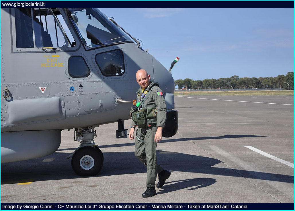 The present Commander of the 3° Gruppo Elicotteri is Capitano di Fregata Maurizio Loi, who took over this role on 10 June 2008. Loi was born in Torino on 5 July 1967, and after gaining a Science Diploma at the Collegio Navale ‘Francesco Morosini’ in 1986, decided to set out on a military career, and was awarded a place on the Corso Normale of the Stato Maggiore at the Accademia Navale in Livorno. In May 1990 he completed his studies, graduating in Maritime and Naval Science from the Università di Pisa, and was posted to the United States Navy schools in America to obtain his Brevetto di Pilota Militare (Military Pilot Wings), and after around two years was awarded his “Naval Aviator” qualification. As is the norm for new pilots returning to complete their training in Italy, he was posted to the 2° Gruppo Elicotteri at Catania, where he completed the requisite type conversion course onto the AB 212ASW/ASuW. This was followed by an assignment, as an embarked pilot, to surface units of the Squadra Navale. His ship-borne posting lasted for four consecutive years, between 1993 and 1997, during which he performed various roles, initially Flying Officer on board the destroyer ‘Audace’ and then the frigate ‘Libeccio’, and then served as Chief of the Air Component of the frigate ‘Bersagliere’. Thes four years were not lacking in operational activities, and he took part in missions supporting the embargo against Serbia Herzegovina, then passed on to operations supporting the UNO forces in Somalia, and was also engaged in the control of the migratory exodus from Albania. While on board the ‘Bersagliere’ he experienced the circumnavigation of the world, between July 1996 and April 1997. In 1998 , with the grade of Tenete di Vascello, he commanded the water tanker ’Ticino’, participating in the operations of the 28° Gruppo Navale off Durazzo (Albania) and the emergency resupply of water to Sicily during the supply crisis that occurred on the island. From October 1999 he returned to flying operations in the mansion of embarked pilot, serving as Chief of the Air Component of the destroyer ‘Luigi Durand de La Penne’. In the same context, from September 2000 until March 2001 he performed the role of Chief of the Air Component of the Seconda Divisione Navale and was on the headquarters staff of the Standing Naval Formation in Mediterranean. On finishing his shipborne tour, he commenced land-based duties (2001), his assignment being the Comando delle Forze Aeree of the Marina Militare, based at Santa Rosa (Roma). In this environment he served as Chief of the ASW/ASuW helicopter office, a post he held until June 2004. Loi’s nex posting was to MariSTaeli Luni as Chief Operations Officer (Capo Ufficio Operazioni) of the 1° Gruppo Elicotteri. During his stay at Luni Comandante Loi was able to acquire the requisite qualifications permitting him to fly the EH 101 helicopter. Still at Luni, between July 2006 and May 2008 he served as Capo Ufficio Operazioni for the Stazione Elicotteri. Despite being at Luni, Loi was also on the staff of the Italian Joint Cell at USCENTCOM (US Central Command), based at Tampa in Florida, with the title of Chief of the Naval Operations Department (J3N) and Communications (J6). In the course of his long career, Loi has accumulated some nine years’ service at sea, 3,000 flying hours, and more than 1,000 deck landings, gaining type ratings on T 34C and T 44° aircraft and A 109, Bell TH 57A, AB 212 and EH 101 helicopters: on the latter two types, he is also qualified as a role instructor. He frequented the Corso di Perfezionamento Professionale in 1994 and the 20^ Corso Normale di Stato Maggiore in 1997. His many operational and training postings have resulted in the award of the following decorations: - Medaglia d’Argento di Lunga Navigazione Aerea - Croce d’oro per Anzianità di Servizio - NATO (Sharp Guard – Maritime Monitor – Maritime Guard) Medal - WEO (Operazione ex-Jugoslavia) Medal - Croce Commemorativa Missioni di Pace in Albania - Croce Commemorativa Missioni di Pace in Somalia - Croce Commemorativa Operazioni Militari in Afghanistan - Medaglia di benemerenza per l’intervento nelle Pubbliche Calamità (PROCIV) - Distintivo Dorato per Attività nei Reparti Aerei M.M. - Distintivo per Ufficiali ex-allievi Scuola Navale Militare “F. Morosini”