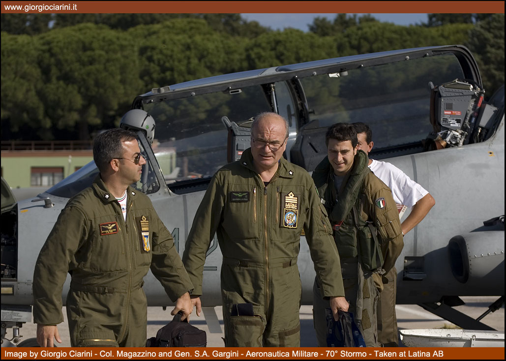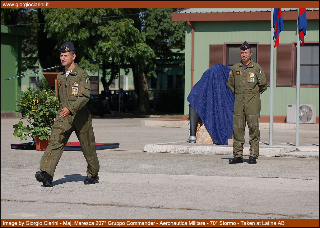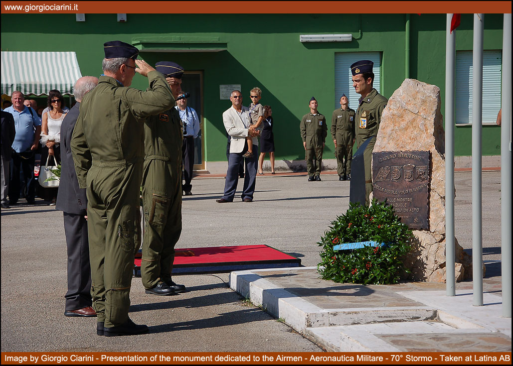In parallel with the withdrawal of the “260AM”, the same day saw the first reunion of flying instructors who had served at Latina airfield since the initiation of the school. The event was organised by a committee led by Generale di Brigata Aerea (in retirement) Roberto Caminiti, who, during the introductory briefing explained how the reunion had been almost spontaneously conceived through a “rumour mill” which had been airing the subject for some time, and which was brought to reality thanks to the interest of many former members of the flying school community. Many former instructors signed up for the event, amongst whom was the most senior of all instructors, Generale di Divisione Aerea (in pension) Eduardo Bellia, who served at the Latina airfield from 1955. The ceremony was attended by Generale di Squadra Aerea Giampiero Gargini as the most senior representative of the air force. Gargini is the current Comandante of the newly created Comando Scuole of the Aeronautica Militare/3^ Regione Aerea (Bari), a role which he has held since January 2008. Also involved in the ceremony were local authorities from the nearby city of Latina, including the mayor, who tol the opportunity to clearly underline the strong ties between the provincial capital and the 70° Stormo MOVM “Giulio Cesare Graziani”. In memory of all the aviators who gained their wings at the Latina school, and who have now passed away, a monument has been established on the central square of the 207° Gruppo area which carries a commemorative plaque, while on the opposite side the fin of an SF 260AM has been set in the ground, complete with the badge of the Stormo. The occasion of the meeting was also a moment of solidarity towards those most in need, the guests were able to attend a fund-raising, the amount of the contributions were donated to the Foundation "aiutare I bambini" the Foundation which is focused on helping children in Italy and around the world with concrete projects to provide housing, food, medicine and education to children and young people themselves.