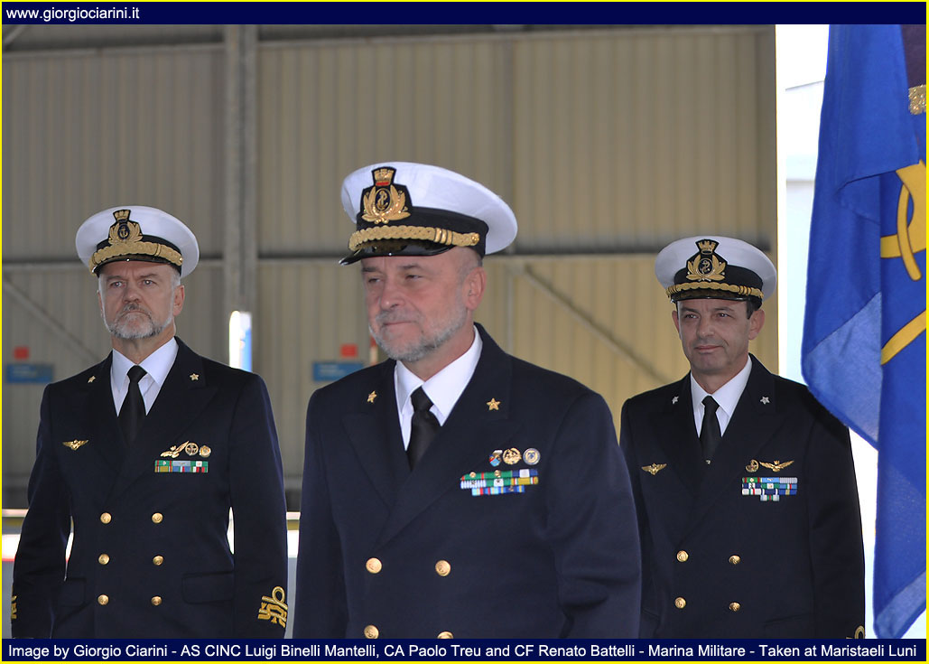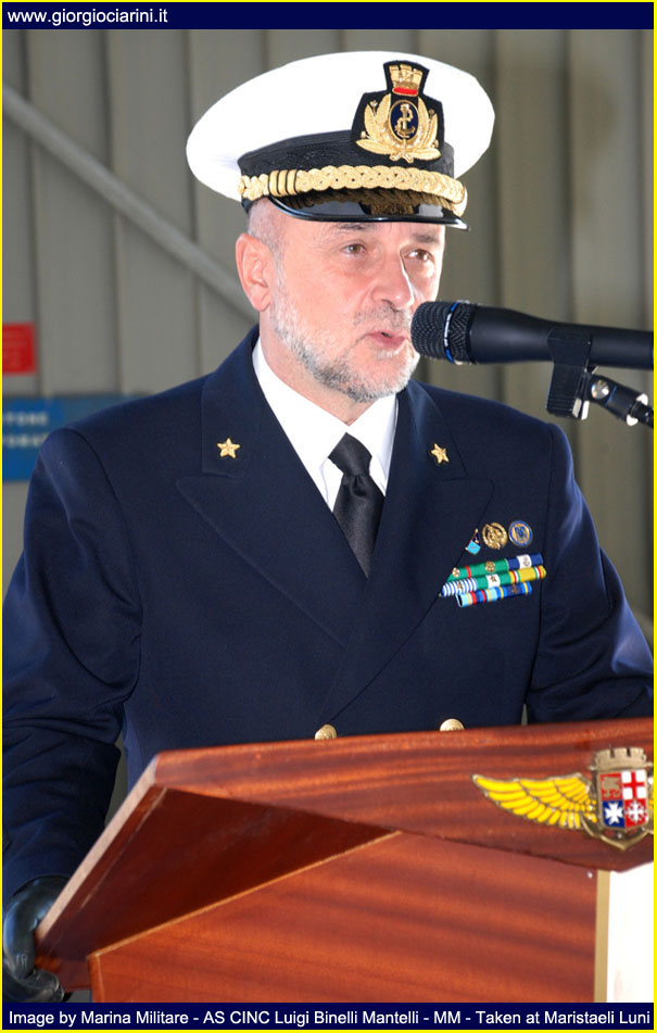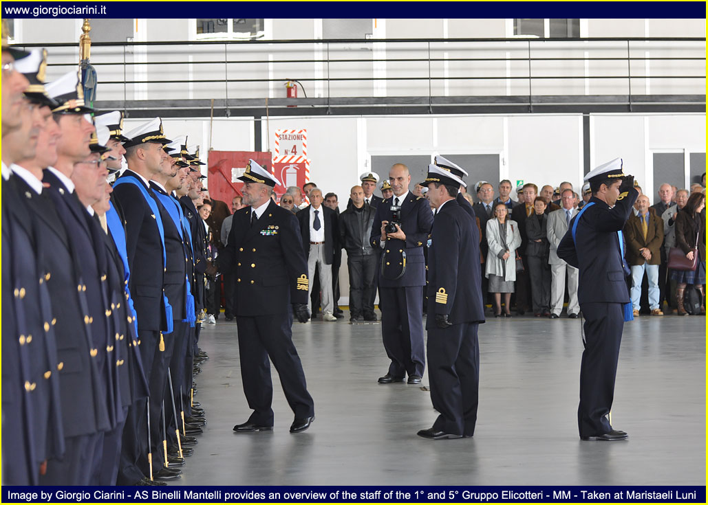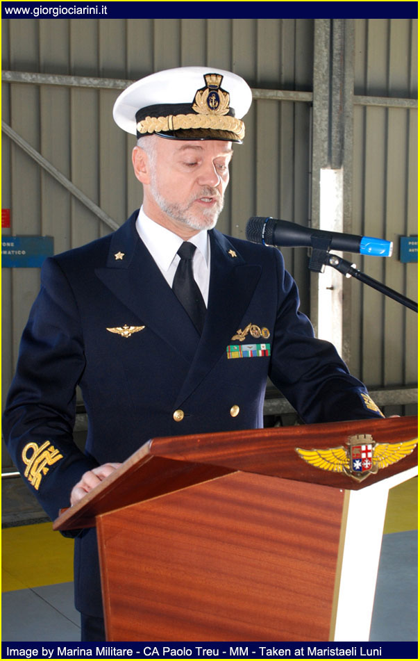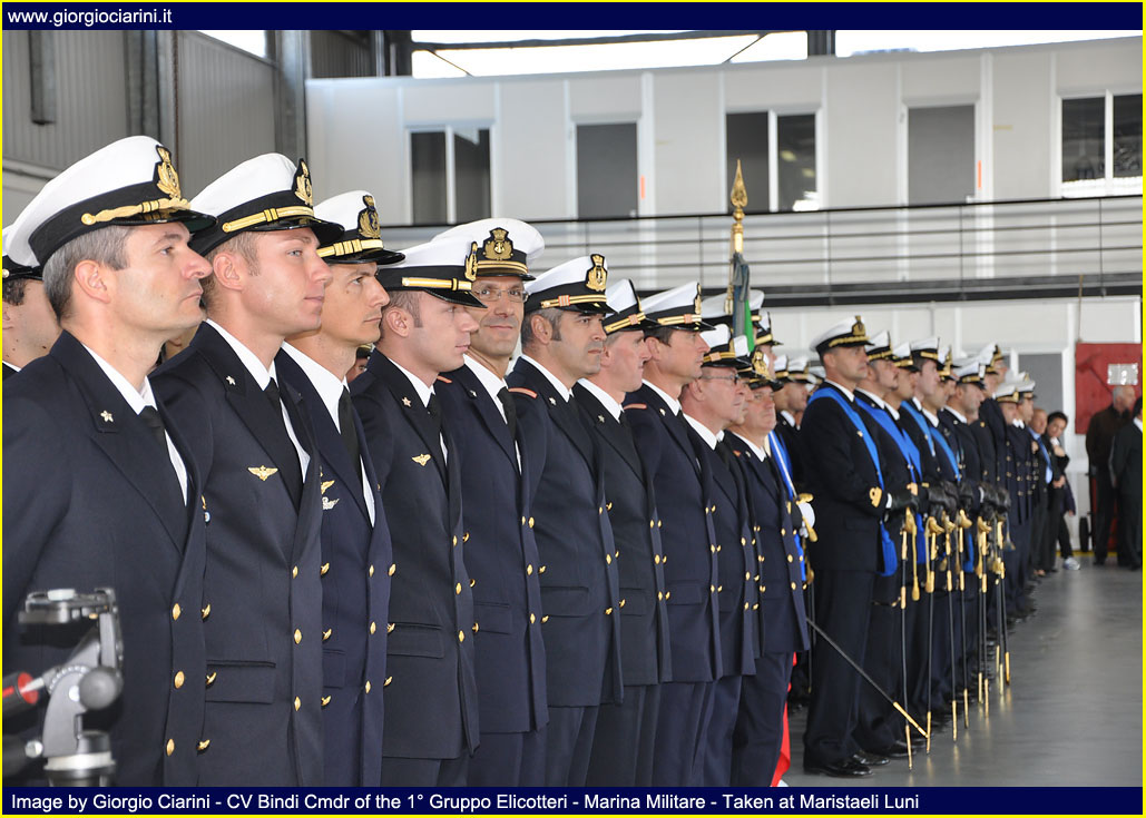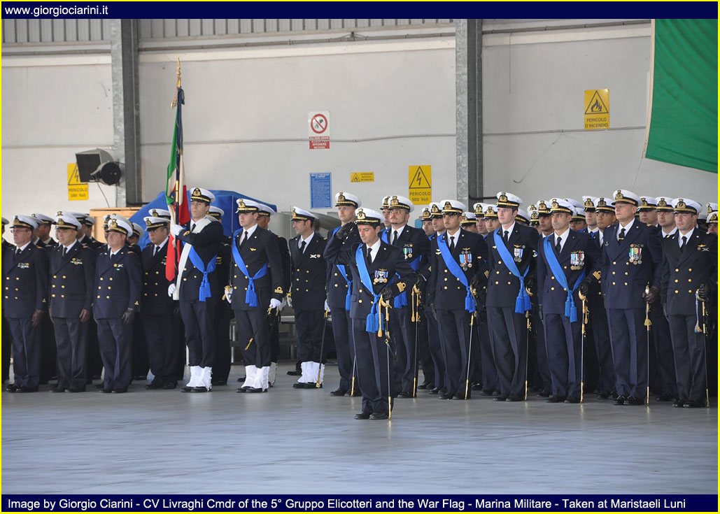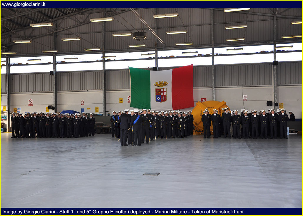 Friday, October 30 took place at Maristaeli Luni the ceremony for the 40th anniversary of the establishment of the 5° Gruppo Elicotteri (5° Helicopter Squadron), Unit that with its forty years of history, has been an element of primary importance for the Marina (Italian Navy) and has constituted for the population and the local community a reference of the ideals that animate the men and the objectives of the same. Since its establishment, the 5° Gruppo Elicotteri with its men and helicopters, has always been committed in the international arena in all operational scenarios in which the Marina intervened to bring peace to the world; has never been outdone at national and international level in support of populations affected by natural disasters, each time expressing a leading role thanks to the commendable capacity for response and the self-sacrifice and dedication of its flight crews and others. Moreover, the Gruppo is now fully integrated into the social and territorial context of the geographical area in which the Stazione Elicotteri (Helicopter Station) resides, this symbiosis has been created thanks to the peculiar activity of supporting local populations with relief and civil protection operations, the 43 missions of forest firefighting carried out in the Ligurian and Tuscan area carried out with success in the just ended summer season. With the remarkable achievement of nearly 75,000 hours of flight, carried out during these forty years of history have earned the unit numerous awards and increasingly tangible signs of sincere appreciation for the effectiveness of the work carried out and for the tireless commitment and generosity that have always characterized the staff of Aviazione Navale (Naval Aviation) of the Marina and allow the operation in any scenario. With the participation of Military, Civil, Religious Authorities, representatives of industry and family members of staff in service, the ceremony was definitely a moment of gathering of all the guests to wish the Unit and its staff a happy anniversary and good work for the future. The presence of CINC, Admiral Luigi Binelli Mantelli, Commander-in-Chief of the Naval Team, and Rear-Admiral Paolo Treu, Commander of the Air Forces of the Navy, are evidence of the high value of the event; both accompanied by Captain Renato Battelli, Commander of the Maristaeli, after reviewing the forces deployed within one of the hangars of the base attended the ceremony. Ceremony that began with the intervention of Lieutenant Commander Giuseppe DeLuisa (Chief Command Office of Maristaeli Luni), who spoke reading the greeting message sent by the Chief of Staff of the Marina, Admiral of Group Paolo La Rosa, to all the staff of the Gruppo Elicotteri, highlighting in the letter his personal thanks to the work of the Unit. While the introductory speech was proposed by the current Commander of the 5° Gruppo Elicotteri, the Captain of Frigate Fabio Livraghi, who wanted to retrace the history from the birth of the unit, highlighting how it was significant and intense, full of events and memories, distinguished by the great professionalism and dedication of the men who have made and will be part of it and thanks to which the Gruppo has reached the current levels of preparation and quality. Continuing his intervention Livraghi stressed how he found at the time of his installation in October 2008, a machine (the 5° Gruppo Elicotteri) perfectly working, effective and efficient, performing with expertise the institutional tasks assigned to him, tasks that are not always easy, especially when it comes to operations outside the area such as in Afghanistan and Somalia, just to name a few, and that engage the staff in long periods far from the family and their land. Following the intervention of Captain Livraghi COMFORAER Rear Admiral Paolo Treu, who took the floor wanted to express the strong emotion that involves him personally, as it is precisely at the 5° Gruppo Elicotteri that has started the training process to become a naval pilot. In the continuation of the speech the Commander expressed deep respect for the Combat Flag of the Unit, emblem of your valor, your identity and your union, but also symbol of the extreme sacrifice of your fallen, wounds always open in our hearts. A warm greeting was also addressed to all the participants present who wanted to share this event, making it richer and more meaningful, from the civil authorities to the religious ones and without neglecting the military ones. While an affectionate thanks was addressed to all the staff no longer in service and who always carried with honor the eagle on the chest. As I recall that the 40th anniversary of the Unit, together with the centenary of the first flights, is celebrated by STV Mario Calderara, Naval Officer Pilot License Number 1, I take this opportunity to emphasize the historical solidity of our identity as sailors of the sky, that has allowed us to operate effectively and safely in the complex maritime context since the birth of the Air Component of the Marina, and that will allow us to face the new challenges with the same strength in national and international contexts, through the acquisition of new means and technologies. The closing of the speeches of rite is passed to the CINC Luigi Binelli Mantelli remarking which it is the tightened tie between the Air Component and the Squadra Navale (Naval Group), tie that has been more and more consolidated, leaving from the first flights carried out by now hundred years ago until the present day, and that it has yet to grow for the near future. The merit must surely be recognized to those who have operated with intelligence and professionalism, and above all we must not forget those who gave their lives to make all this possible. In the continuation of the speech the Admiral of Group has wanted to emphasize that our history continues and will surely continue to illuminate the future, because the aviation of the Marina is 