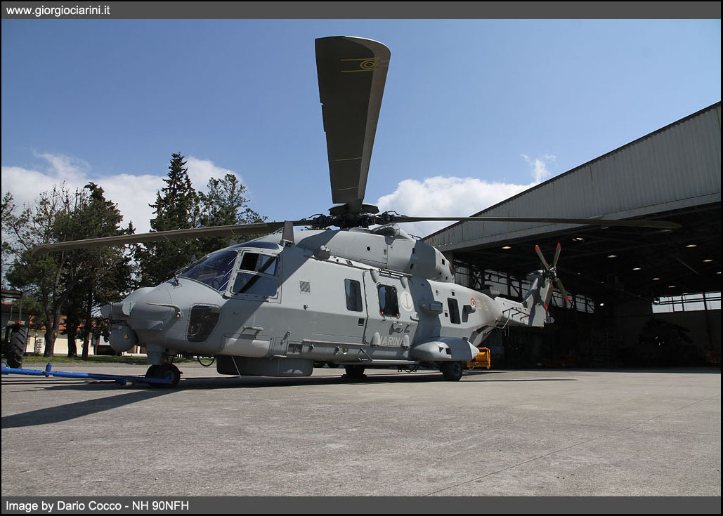 L’NH 90NFH (NATO Frigate Helicopter) è frutto di una collaborazione europea tra Eurocopter France/Deutschland, AgustaWestland e Fokker Aerostructures. Fondata nel 1992 NHIndustries è una Società denominata SAS con sede in Francia ad Aix-en-Provence. NHIndustries è responsabile della progettazione, della costruzione e della messa in servizio di tutti gli elicotteri NH 90TTH/NFH appartenenti alle forze armate che aderiscono all’Agenzia NAHEMA (NATO Helicopter Management Agency) come “Steering Committee” (Belgio, Francia, Italia, Germania, Olanda e Portogallo) e come “Joint Executive Committee” (Finlandia, Norvegia e Svezia) e per tutte le esportazioni. Al momento sono 14 le nazioni che si sono dotate dell’NH 90 nelle due versioni disponibili, TTH (Tactical Transport Helicopter) versione terrestre, e dell’NFH come versione navale, gli elicotteri vengono attualmente costruiti su sei differenti linee di produzione dislocate in: Italia (Venezia-Tessera), Francia, Germania, Finlandia, Spagna e Australia. La progettazione dell’NH 90 inizia a partire dai primi mesi del 1993, il primo volo è stato effettuato dal prototipo PT1 il 18 dicembre 1995, nel marzo del 1997 ha volato il secondo prototipo PT2, mentre il terzo prototipo PT3 nel novembre del 1998, tutti e tre sono stati costruiti in Francia, sono seguiti altri due prototipi uno nella versione TTH, uno costruito in Germania e uno in versione NFH costruito in Italia. Il primo elicottero di serie è entrato in servizio nel 2006 con l’Esercito tedesco nella versione TTH, il primo NH 90 italiano è stato anch’esso un NH 90TTH per l’Aviazione dell’Esercito entrato in servizio nel dicembre del 2007. L’NH 90NFH è un elicottero multiruolo biturbina di classe media con rotore quadripala, rispecchia appieno le caratteristiche dettate dai requisiti NATO per l’interoperabilità e standardizzazione delle flotte per le operazioni terrestri e marittime. In particolar modo rispecchia le caratteristiche richieste di: -Standard di progettazione FAR 29 e MIL-STDS -Sistemi di aeronavigabilità determinati dalle nazioni aderenti alla NAHEMA -Capacità operativa di volo dal livello del mare fino all’altitudine di 6.000mt -Capacità operativa di volo con temperature da -40°C a + 50°C -Operazioni con continua presenza di ghiaccio come da specifica DEF-STN 00-970 -Operazione ogni-tempo di giorno e di notte -Operazioni sul mare e dalle navi -Operazioni su piste non preparate e su piani inclinati -Operazioni con sistemi d’arma specifici -Sistema di missione ridondante attinente alla specifica MIL-STD 1533 -Sistema multi-ridondante di Fligh-by-Wire con Flight Control System (FCS) -Compatibilità con i campi elettromagnetici e resistente alle interferenze elettromagnetiche. -Avionica integrata con schermi multifunzione, sistema avanzato di controllo dell’elicottero -Sistema avanzato di missione -Tecnica di progettazione digitale avanzata L’NH 90 è basato sul concetto di sistemi comuni per ridurre i costi, infatti il fulcro per entrambi le versioni è l’utilizzo di suite comuni, rispecchiando il concetto design once, use many times (progettare una volta, utilizzare più volte), riducendo la progettazione e l’impronta del supporto logistico integrato. Avendo un centro unico per l’addestramento dei piloti e dei manutentori, della manutenzione e delle parti di ricambio riduce significativamente i costi per tutta la vita dell’elicottero.