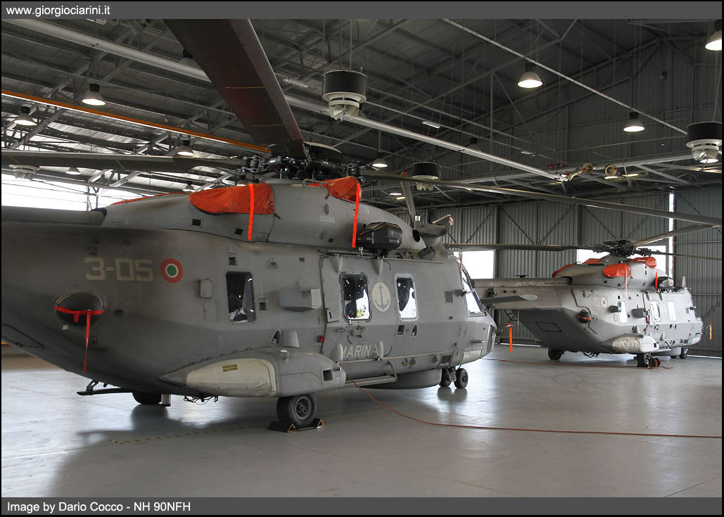 In July 2009 I had the opportunity to visit the MariSTaeli of Luni-Sarzana and then become aware of all those elements that made up the Base Aeromobili (Aircraft Base) of the Marina Militare (Italian Navy). In the course of this year I returned with the intention of deepening what changes had occurred. The only substantial change was the one that involved the 5° Gruppo Elicotteri (Helicopter Squadron) with the transit from the AB 212ASW/ASuW, workhorse of many years of operations, in favor of the new and powerful NH 90NFH (NATO Frigate Helicopter). To get the right and due information on the new layout of the Unit I met the Capitano di Fregata (Frigate Captain) Cristiano Falorni Commander of the 5° Gruppo Elicotteri, who assisted by Lieutenant Paolo Clericuzio, he explained to me what were the salient steps that characterized the inline entry of the new machine. The first helicopters entered service with the 5° Gruppo Elicotteri during 2011 (since June), currently there are about ten machines in active service. The staff and structure remained unchanged with about thirty pilots in strength, in the last year has also reached an excellent situation with regard to the qualification of the crews with a good division between Combat Ready pilots, among those still with a Limited Combat Ready and with a minority still in training. In fact after the entrance of the first machines the greater engagement supported from the Unit has been the conversion of the crews that has been carried out of hand with the arrival of the new helicopters. Initially the operational conversion for the theoretical part was curated by AgustaWestland, followed by the Studies Office of MariSTaeli Catania. Once the initial transition phase was over, the pilots returned to Luni, where, subject to availability, simulator sessions were held at AgustaWestland’s production sites, or sessions at the NMST (NH 90 Mission System Trainer) present in Luni Sarzana; the latter is used in particular to introduce pilots to the mission systems of the helicopter. The first phase of Ground School lasts on average two months, of which two weeks held at the NMST, slightly longer (two to three weeks) the part dedicated to the simulator. This is followed by a "basic" practical part where there are about fifteen flights that allow the pilot to get acquainted with the helicopter. The missions are carried out with an increasing degree of difficulty, starting from VFR flights (Visual Flight Rules), passing to the formation flying or with the use of the barycenter hook and arriving to carry out missions in a night environment. The next phase focuses on the specific role of naval pilot, and is mainly focused on the use of Sonar. After the practical phase the pilot gets the Limited Combat Ready, usually in a time span ranging from ten months to a year at most, from this moment the pilot can begin to play the role of "Second". Later, depending on the needs of the Armed Force, the pilot is directed to a specific preparation in the role "Eliassalto" or "ASW/ASuW". The next step is advanced training where the pilot achieves the skills to operate in an aero-naval framework, then ships, submarines, aircraft and helicopters, where it is not possible to improvise but requires a coordination of actions, with a gradual approach of "integration" of the helicopter within the Squadra Navale (Naval Team), this phase of on-job training will lead the pilot to carry out one/ two exercises in a so-called "complex". After this phase the pilot obtains the qualification LCR ASW/ASuW (Limited Combat Ready Anti Submarine Warfare-Anti Surface Warfare). The next step is to obtain the CR (Combat Ready) qualification that usually takes place after about 150 missions and 450 hours of flight, numbers that depend mainly on the "objective evaluation" carried out on the element by the Squadron Commander. After the basic qualification the pilot is evaluated for "characteristics", the first one that we highlight is the "bravo day" that manifests the ability of the pilot to take off and to affix on the naval units is to "single spot" that "multispot", the training is progressive and leads to being able to a landing on a ship with a single landing point "single spot" at night, where the crew coordination is essential for the success of the maneuver, in this particular situation the "characteristic" becomes "bravo night". The national commitments supported by the 5° Gruppo Elicotteri after reaching "full maturity" (2014-2015) were mainly in the operating theatres of southern Italy with the Mare Nostrum operation where, constantly one/two helicopters operated from the naval units (Fasan and San Giorgio) or from Catania and Lampedusa. In addition, a helicopter of the 5° Gruppo has operated on board the FREMM (Frigate European Multi Mission) Bergamini during the Periplo accomplished by the 30° Gruppo Navale (Naval Squadron) in North Africa (end 2013 - beginning 2014). In the same period another helicopter served aboard the destroyer Duilio during a campaign in Northern Europe. The operations of 2014 ended with the dramatic event of the fire that involved the ferry Norman Atlantic; an NH 90 of the 5° Gruppo stationed in Catania intervened on the 29th and the 30th to provide assistance to the people on board. For 2015 the Unit remains constantly deployed on the bases of Grottaglie and Catania as well as on the ships of the Marina Militare engaged to face the perennial emergency that is lived daily in the Mediterranean. Another aspect that we faced with Commander Falorni was to understand what are the essential differences that distinguish the new helicopter in service at the 5° Gruppo Elicotteri and the old AB 212ASW/ASuW. The AB 212, built under license by Agusta is an evolution of the Bell UH 1N "Twin Huey" model conceived for the Marine Corps and for the United States Navy, developed in turn on the frame of the UH 1 Iroquois "Huey" undoubtedly the most famous of the helicopters 