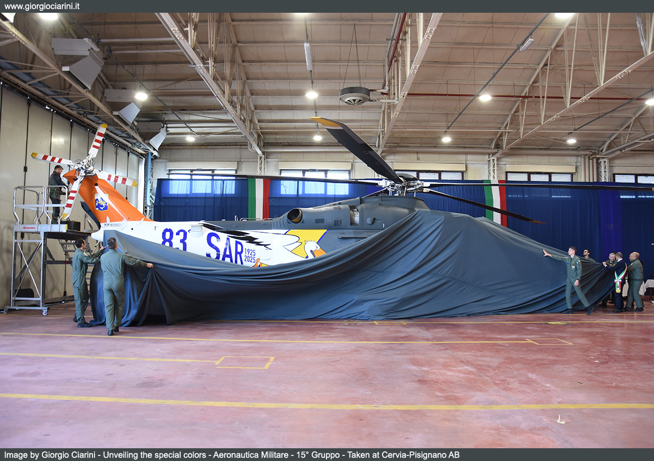 On March 24, a ceremony was held at the Cervia-Pisignano Air Base to mark the centenary of the 83° Gruppo SAR (Search and Rescue – 83rd Squadron SAR). The 83° Gruppo is one of five Gruppi SAR (80° / 82° / 84° / 85°) under the 15° Stormo (15th Wing), which carry out search and rescue operations nationwide. Also under the 15° Stormo is the 81° Gruppo Addestramento Equipaggi (CAE - 81st Crew Training Centre), which is also based in Cervia. The 83° Gruppo was formed on November 5, 1925 in Augusta (Syracuse) and incorporated into the 27° Stormo Idrovolanti - 27th Seaplane Wing (Augusta). The decision to postpone the event by a few months, taking advantage of the spring weather, was amply rewarded by pleasant conditions with clear skies and a light breeze from the nearby Adriatic. The date of March 24 was not chosen at random, but marks exactly the eighty-third day (83rd day) since the unit’s formation on November 5. The ceremony was attended by local institutions, a large number of retired personnel, and an equally substantial number of photographers, enthusiasts and media representatives. The celebration began with a speech by the Commander of the 83° Gruppo, Major Simone Agostinelli, who addressed a message of greeting to the representatives of the institutions and to all those present. He was followed by the Gruppo’s senior commander, Colonel (Ret.) Ruggero Leonetti, who in his speech highlighted the Unit’s history, having been committed to providing assistance to the population since time immemorial. Colonel Antonio Viola, Commander of the 15° Stormo, then took the floor. He warmly thanked all those present and highlighted how the Stormo has constantly adapted to evolving operational scenarios and to technological innovations in equipment and training. He extended equally warm thanks to the Gruppo Commander and his staff for their ongoing commitment in this particular area. The final speaker was Air Division General Alessandro De Lorenzo (Commander of the Comando Forze per la Mobilità e il Supporto - Mobility and Support Forces Command), to which the 15° Stormo reports, who emphasised the importance of air rescue, particularly when our territory is severely affected by major weather events, such as the 2023 Emilia Romagna floods, where the Stormo and its crews rescued more than 300 people in imminent danger of losing their lives. The most moving part, which touched everyone present, was the laying of a colourful floral tribute at the foot of the Stormo’s war memorial, which immediately brought to mind the accident of October 23, 2008, when an HH-3F helicopter, having taken off from Rimini (home to the 83° Gruppo until 2010) and bound for Florennes (Belgium), crashed near Strasbourg (France), causing the deaths of all eight crew members. Following the laying of the floral tribute, the Military Chaplain gave a lengthy speech on the nature of the actions that shape every person’s life. Once the commemorative ceremony had concluded, the guests were invited back to the hangar for the unveiling of an HH-139B helicopter featuring a commemorative livery specially created to mark the unit’s centenary. The aircraft with registration number 15-63 MM82007 has been partially “wrapped” (a technique involving the application of a thermoformable adhesive film) in a colour scheme that incorporates the quintessential colours of air rescue: white, yellow and “day glow” orange – a colour scheme used in the early years of service on the HH-3F, a livery later changed to the standard NATO grey/green camouflage, more suited to purely military operations, before evolving into the current all-grey scheme. The Centenary logo has been placed on both sides of the tail rotor; the inscription “83° SAR 1925–2025” appears on both sides of the tail boom; on the left side are the insignia of the two Squadriglie (Flights) of the 83° Gruppo, the 141ª and the 147ª; whilst on the right side a large pelican is depicted. The waterbird is an ancient Christian symbol of salvation, selfless love and sacrifice, representing Christ giving his life for humanity. Based on the legend that the mother feeds her young with her own blood, it symbolises the Eucharist (the body and blood given) and the Resurrection. The word “Leonardo” was clearly visible on the helicopter’s doors, as the manufacturer of the helicopter and the financial partner that contributed to its execution. The day continued with a flypast over the airbase by two HH-139B helicopters displaying the Italian flag and that of the 83° Gruppo, both suspended from the winch’s steel cable and held by a rescue worker. The same specially coloured helicopter then carried out a ground search and rescue demonstration, involving the recovery of an injured person on a stretcher and hoisting them on board via the winch. The day concluded with the opportunity to purchase the commemorative patch and lithograph, whilst a special rucksack was distributed to both serving and retired personnel. The ceremony concluded with the Gruppo Commander performing the “traditional cutting” of the cake.