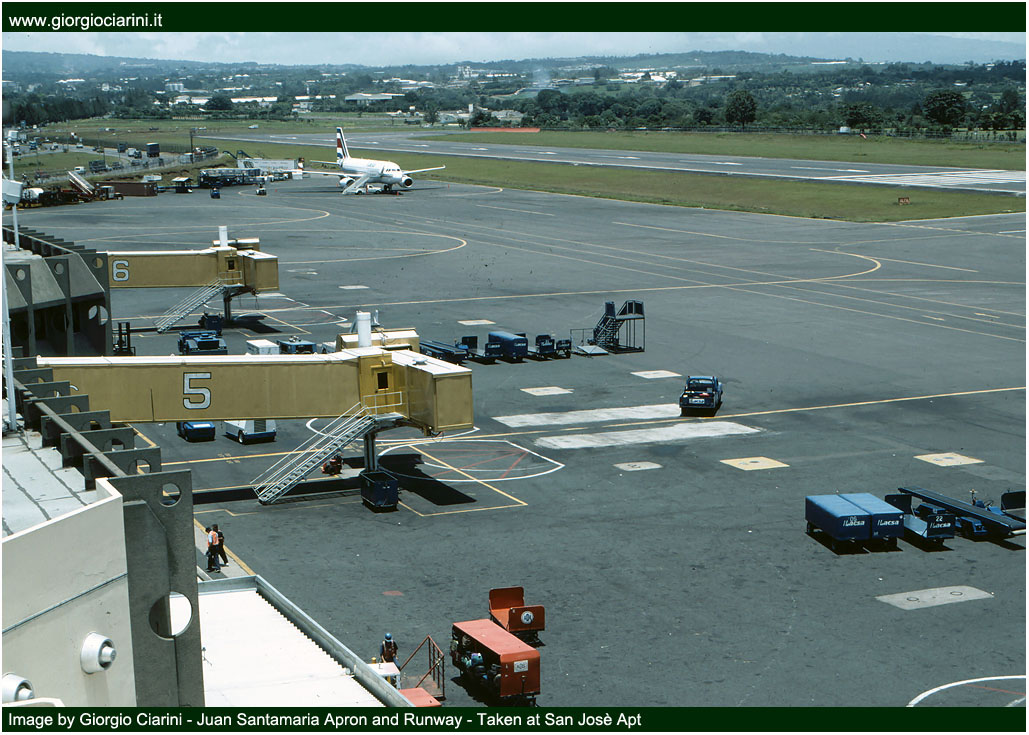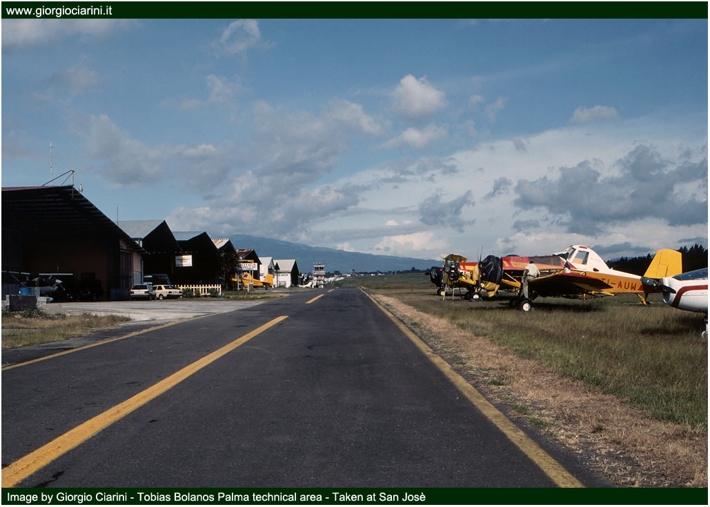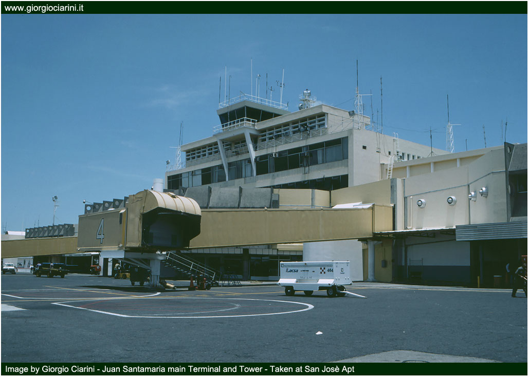 L'aeroporto della capitale San Josè è intitolato a Juan Santamaria eroe nazionale, posizionato nella valle centrale ad un'altitudine di circa 1.000 metri sul livello del mare, a soli 17 km dal centro è il principale del paese con i suoi due milioni e mezzo di passeggeri all'anno, inoltre garantisce l'utilizzo del trasporto aereo al 37% della popolazione totale residente nella città e nei suoi sobborghi. Concepito per sostituire il vecchio aeroporto di La Sabana, nel 1952 iniziarono i lavori di costruzione del nuovo scalo che vede la sua inaugurazione nel tardo 1955 con l'arrivo dei primi voli internazionali effettuati da Pan American, KLM e Taca, utilizzando velivoli Convair 340, ma solo nel 1958 il Presidente Josè Figueras inaugura la struttura adibita a terminal che sostituisce un edificio provvisorio concludendo così i lavori. Nel 1962 si inaugura l'era dei jet con l'atterraggio di un Dc 8 della Pan American, da qui si prospetta la necessità di ampliare la lunghezza della pista agli attuali 3.012 metri per una larghezza di 46 metri, ed installare sistemi di avvicinamento VOR e ILS che integrano uno già esistente del tipo luminoso VISTA. L'odierna struttura aeroportuale governata dalla direzione generale dell'aviazione civile, dipendente direttamente dal Ministero delle Opere Pubbliche e dei Trasporti, è cosi composta: il corpo centrale dell'aeroporto è occupato dall'aerostazione disposta su tre livelli, al piano terra check in, banca, ufficio informazioni, zona doganale e ritiro bagagli. Al 1°piano zona imbarco, ristorazione, negozi e uffici delle compagnie, il 2° piano è ad uso esclusivo degli uffici amministrativi. L'imbarco e lo sbarco dei passeggeri avviene esclusivamente con l'utilizzo di sei finger, è prevista a breve termine la costruzione di altri quattro nuovi pontili nell'attuale zona cargo ad est dell'aerostazione. Le compagnie commerciali più rappresentative che effettuano voli regolari sul Juan Santamaria sono: KLM, LTU, United, American, Continental, Copa, Aviateca, SAM Colombia, Cubana, Mexicana, Aeronica, Taca, Iberia, ed ovviamente le uniche due compagnie costaricensi Lacsa e Aero Costa Rica. Come ho menzionato precedentemente la zona ad est è occupata dal cargo center con delle costruzioni abbastanza fatiscenti ma che presto dovranno far posto all'ampliamento dell'aerostazione passeggeri; il traffico merci a San Josè è intenso con una media di 4\5 voli al giorno principalmente provenienti dagli Stati Uniti operati da American, Arrow Air, Kalitta Air, Fine Air, Trans Continental, Emery Worldwide, DHL, Challenge, quasi tutte le compagnie utilizzano i quadrimotori Dc 8, oppure provenienti dalla Colombia, quindi Aerosucre, Lineas Aereas Suramericanas, che invece utilizzano i vecchi Caravelle trasformati in cargo; l'unica compagnia europea che trasporta merci con voli all cargo sullo scalo è la Martinair Holland che utilizza un nuovissimo MD 11F. Nonostante l'ottima funzionalità dell'attuale aerostazione, non molto distante è stato costruito, e terminato recentemente, un terminal usato esclusivamente durante l'alta stagione in coincidenza con l'arrivo di voli charter, mentre per il restante periodo dell'anno rimane inutilizzato. Continuando verso ovest troviamo la stazione dei Bomberos (Vigili del Fuoco) e adiacente la zona tecnica e base operativa della compagnia di bandiera Lacsa e della sussidiaria Sansa; lo spazio riservato è molto limitato e non avendo hangar a disposizione tutti i lavori vengono svolti all'aperto, mentre una situazione decisamente diversa si ha per la zona successiva, sede della COOPESA "Cooperativa de Servicios Aero Industriales", realtà industriale nel campo aeronautico del paese, nonchè stazione di riparazione certificata dalla FAA, che come sottolineato dal Work Manager Luis Villalobos ne contraddistingue l'alta qualità tecnico-professionale. L'area occupata dalla COOPESA include un ampio piazzale e due hangar di notevoli dimensioni più un fabbricato di recente costruzione adibito per la lavorazione di materiali compositi. Le principali attività che coinvolgono i circa 700 lavoratori sono la manutenzione ordinaria, le modifiche di sistemi in cabina, la verniciatura, la conversione di velivoli passeggeri in cargo e per ultimo l'installazione di motori Stage III su aeromobili B 727, con una media di 5\6 velivoli lavorati mensilmente, per lo più di compagnie provenienti dal continente americano, pur conseguendo un risultato notevole questo non soddisfa la dirigenza che prevede un'ulteriore espansione con la costruzione di nuovi hangar. La serie di infrastrutture si completa con la zona ad uso della locale Guardia Civil di cui tratteremo specificatamente in un altro report. |