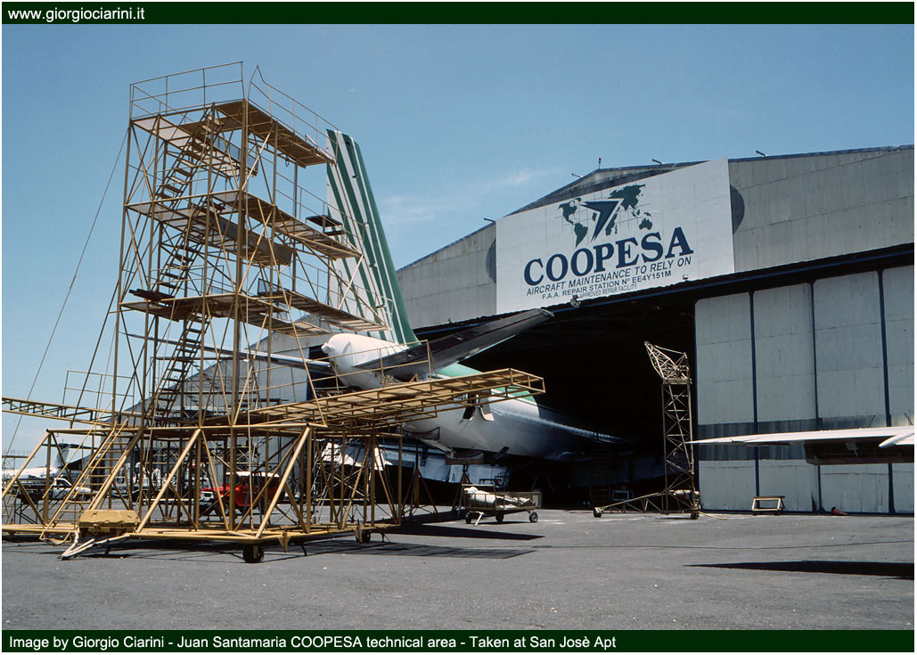 Costa Rica is defined by many as the "Switzerland" of Central America. This tropical nation is bordered by Nicaragua to the North to the Southeast with Panama; its coasts overlook to the Northeast the Caribbean Sea, to the West the Pacific Ocean. The country from the morphological point of view is extremely diverse despite its small size, the extension of a little over 51,000 square kilometers, just about Piedmont and Lombardy regions combined, which contain a great variety of natural habitats that give a wealth of flora and fauna unique, and this is a sort of magnet for nature lovers from all over the world, the last official figure of 1993 has encountered an influx of some 700,000 foreigners, twice than just five years earlier. Getting to Costa Rica from Italy is not extremely easy as there are no direct flighs, but thanks to some U.S. and European airlines with one stopover in the chosen airline hub it is possible to reach this destination, in some circumstances, as we will see, even with more than one. In our case, having flown with the Spanish airline Iberia routing has been Milan Linate - Madrid - Miami - San Jose of Costa Rica, for a total of 14 hours of actual flight time to be added to the time spent on the ground at the airports, definitely heavy but very interesting. As mentioned earlier, the arrival is in the country's intercontinental airport at San Jose if using scheduled flights, while some charter flights land in Liberia, the nation's second international airport. The airport system also includes a number of facilities used exclusively by domestic airlines such as Sansa, Travelair and Aero Costa Sol, or by private aircraft, these airfields all have dirt runways, then usable only by specific aircraft suitable for this type of operations. The airport of the capital San Jose, named after national hero Juan Santamaria, is located in the central valley at an altitude of 1,000 meters above sea level, just 17 km from the capital’s center and is the most important on the country, with its two and a half million passengers a year, also guarantees the use of air transport to 37% of the total population residing in the city and its suburbs. Designed to replace the old airport of La Sabana, the construction of the new airport began in 1952, and saw its opening in late 1955 with the arrival of the first international flight operated by Pan American Airlines and Taca, using Convair 340 aircraft, but only in 1958, President José Figueres inaugurated the building used as a terminal to replace a temporary building thus concluding the work. In 1962 it entered the jet era with the landing of a Pan American DC 8, hence it raised the need to extend the length of the runway to the current 3,012 meters with a width of 46 meters, and install approach systems VOR ILS integrating an existing light system VISTA. The modern airport facilities, governed by the Directorate General of Civil Aviation, directly dependent from the Ministry of Public Works and Transport, is composed as follows: the central body of the airport of the air terminal is on three levels, ground floor check-in, bank, information office, customs and baggage claim area. On the 1st floor boarding area, restaurants, shops and offices of companies, while the 2nd floor is for the exclusive use of the administrative offices. The embarkation and disembarkation of passengers takes place exclusively with the use of six fingers, will soon be completed with the construction of four new piers in the current cargo area to the East of the airport. The most representative commercial airlines that make regular flights to Juan Santamaria are: KLM, LTU, United, American, Continental, Copa, Aviateca, SAM Colombia, Cubana, Mexicana, Aeronica, Taca, Iberia, and of course the only two Costa Rican companies, Lacsa and Aero Costa Rica. As I mentioned earlier the area to the East is occupied by the cargo center with buildings quite dilapidated but that will soon make way for the expansion of the passenger terminal; cargo traffic in San Jose is intense with an average of 4/5 flights each day mainly from the United States operated by American, Arrow Air, Kalitta Air, Fine Air, Trans Continental, Emery Worldwide, DHL, Challenge, almost all companies use Dc 8s, while from Colombia Aerosucre and Lineas Aereas Suramericanas still use the Caravelles converted into freighters. The only European carrier that transports goods with all-cargo flights at the airport is Martinair Holland, which uses a brand new MD 11F. Despite the excellent features of the airport, not far away it has been built, and recently completed, a terminal used only during the peak high season to cater the arrival of charter flights, which, for the remaining period of the year, remains unused . Continuing to the West we find the Bomberos (Fire) station and adjacent the technical area and base of operations of the airline Lacsa and its subsidiary Sansa, the reserved space is very limited and not having hangars available all the jobs are done in the open, while a very different situation occurs for the next zone, home of COOPESA "Cooperativa de Servicios Industriales Aero", an industrial town in the field of aeronautics, as well as FAA certified repair station, and as pointed out by the Work Manager Luis Villalobos is distinguished by the high-quality technical training. The area occupied by COOPESA includes a large apron and two hangars of considerable size plus a building of more recent construction used for the machining of composite materials. The main activities involving about 700 workers are line maintenance, changes in cabin systems, painting, converting passenger aircraft into freighters and finally the modification of engines on B727 aircraft to cope with Stage III rules, with an average of 5/6 aircraft delivered each month, mostly from American companies; while this is a remarkable achievement it does not yet meet the leadership planning that envisages further expansion with the con